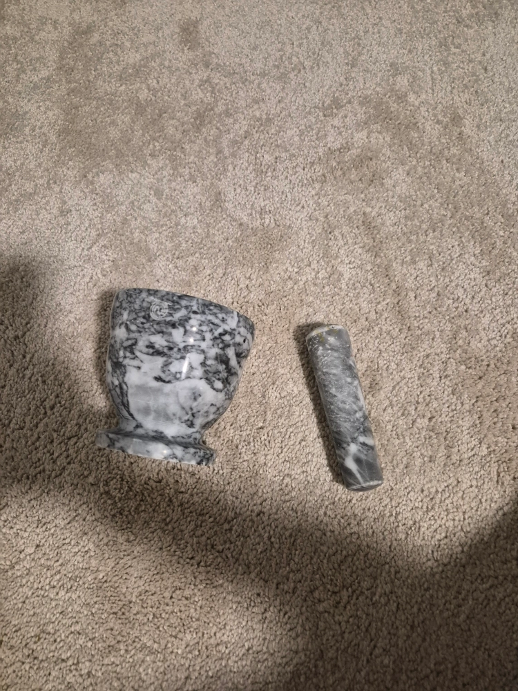 Selling a marble mortar and pestle set. It's in great condition and ready for your culinary creations! The set is made of beautiful grey and white marble. Perfect for grinding herbs and spices!