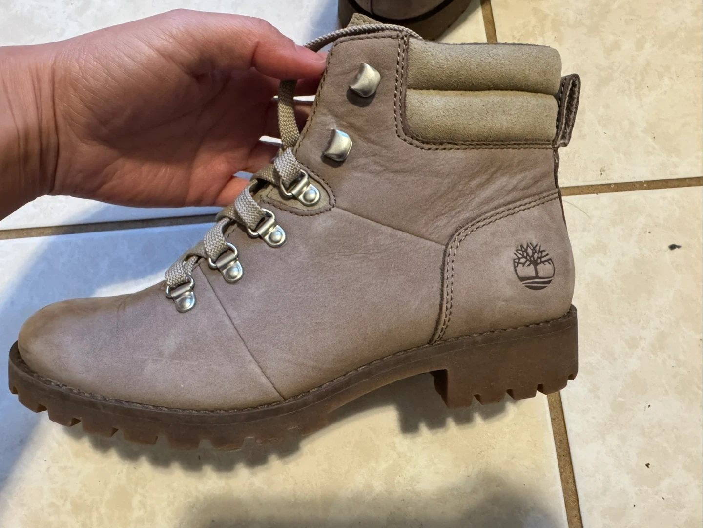 802Selling a pair of Timberland hiking boots in women's size 6. They're in good condition and ready for your next adventure! The boots feature the classic Timberland logo and a sturdy sole for great traction.