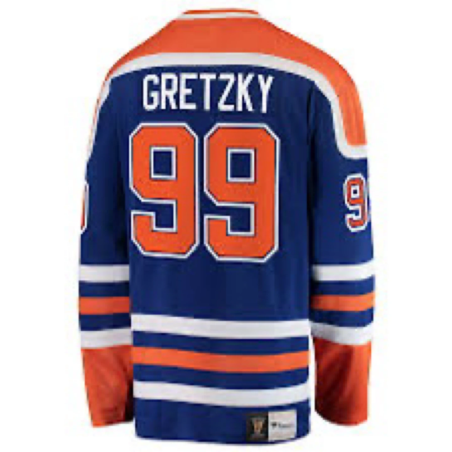 Selling a Gretzky #99 Edmonton Oilers jersey! The jersey is blue, orange, and white. Perfect for any hockey fan!