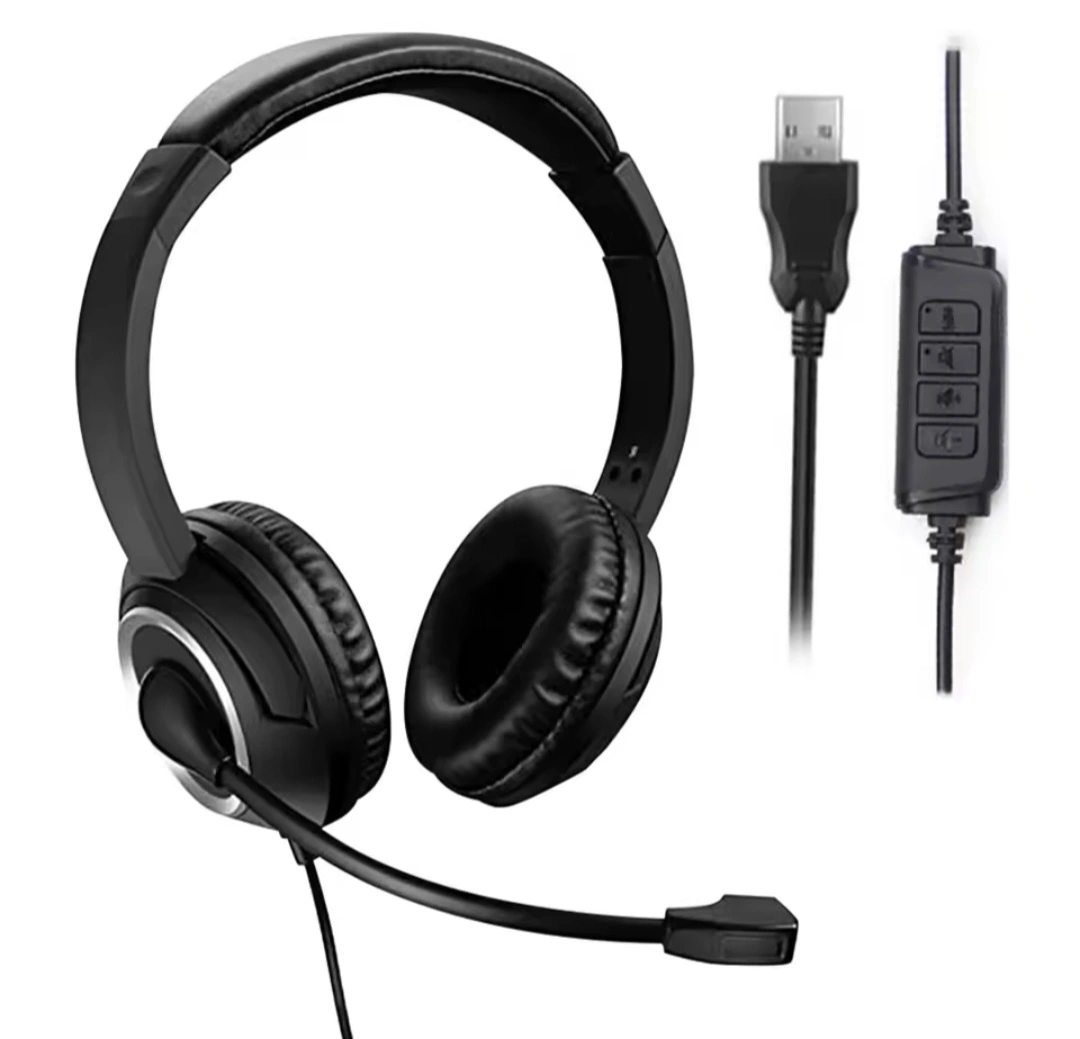 Selling a black USB computer headset. It comes with a microphone and in-line controls. Perfect for online meetings or gaming!