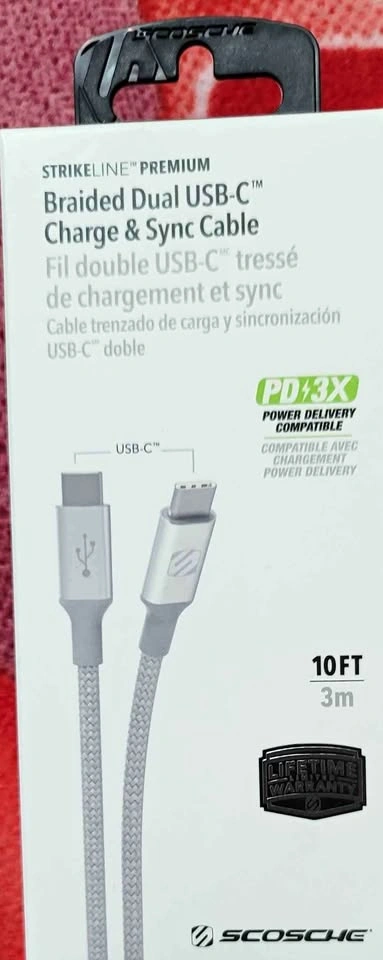 Scosche 10Ft Braided Dual USB-C Cable
