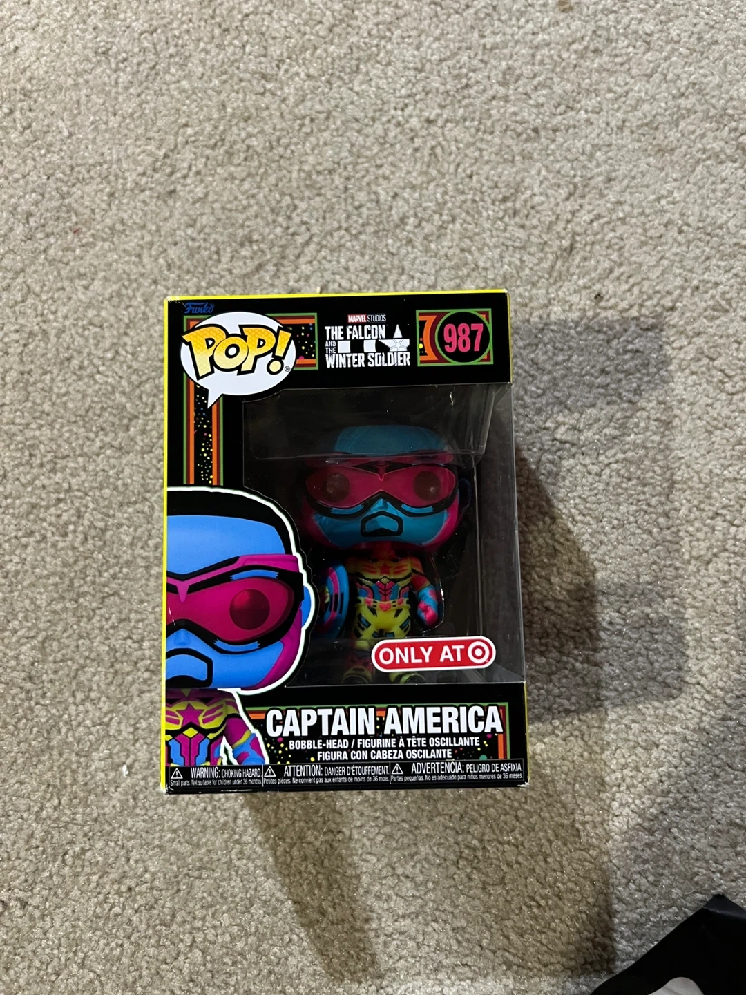 Selling a Funko Pop! figure of Captain America from the Marvel Studios series "The Falcon and the Winter Soldier"! This bobble-head figurine is number 987 in the series.