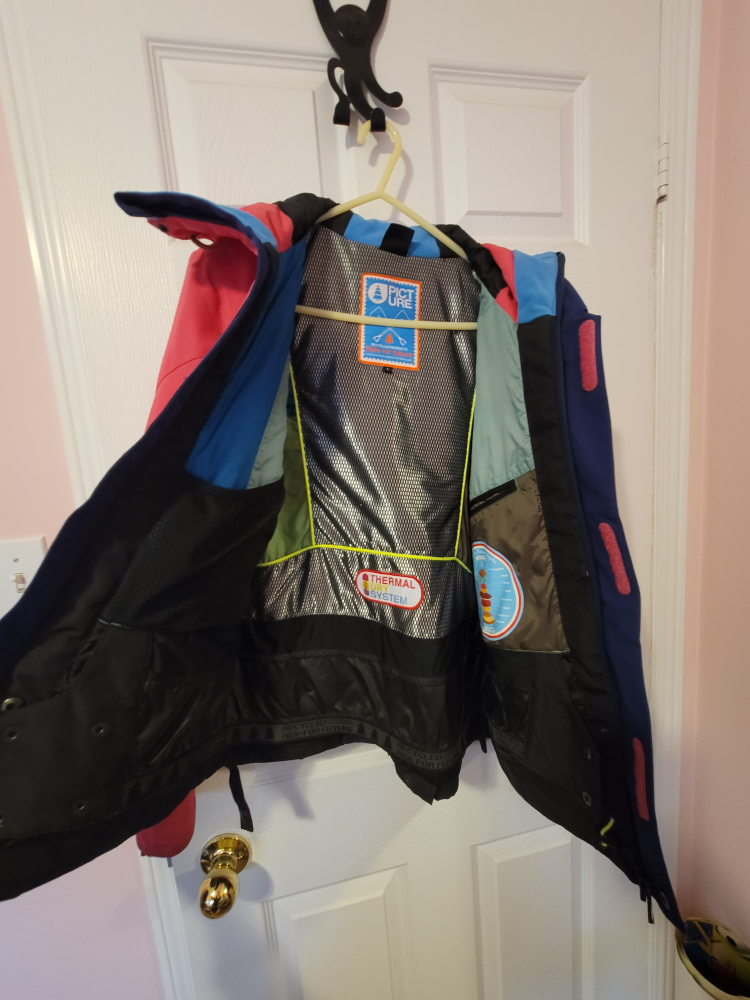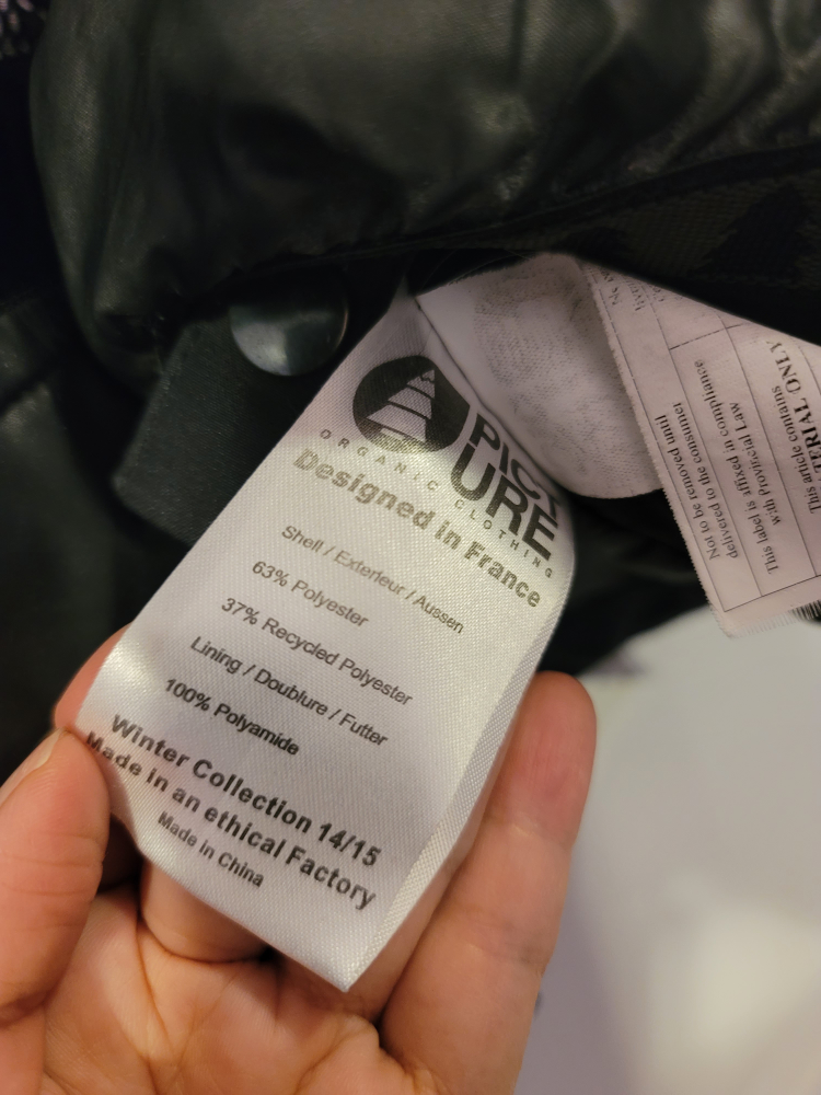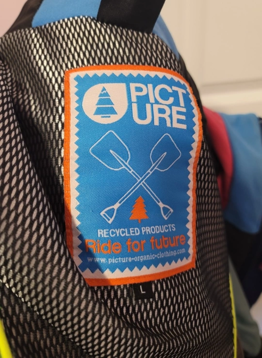 Picture Organic Clothing jacket in size L. The shell is made of 63% polyester and 37% recycled polyester. The lining is 100% polyamide. Good for daily use or winter sport!