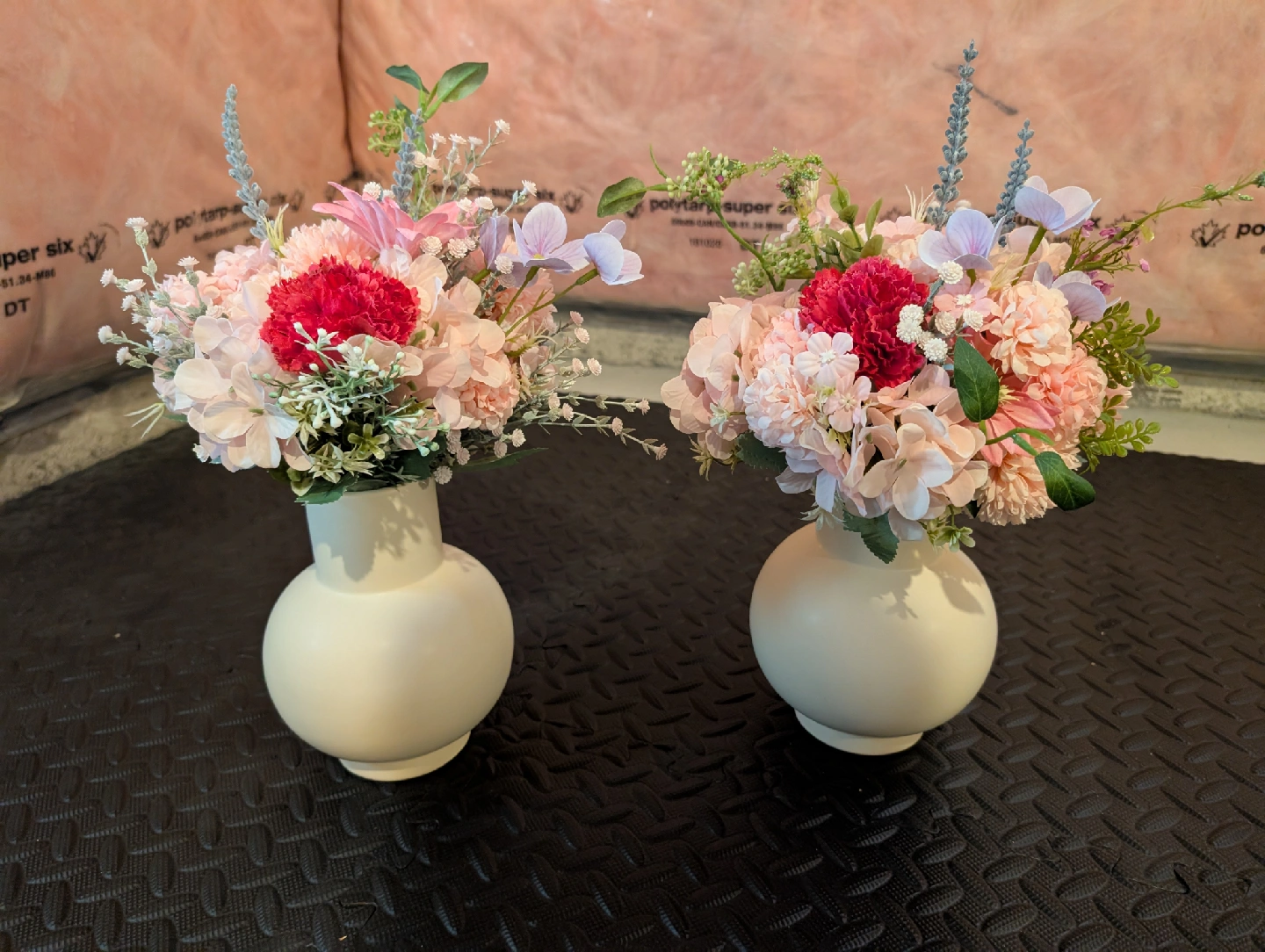 Selling two floral arrangements in vases from South Korea.They are in great condition and would look lovely in any room or wedding events.