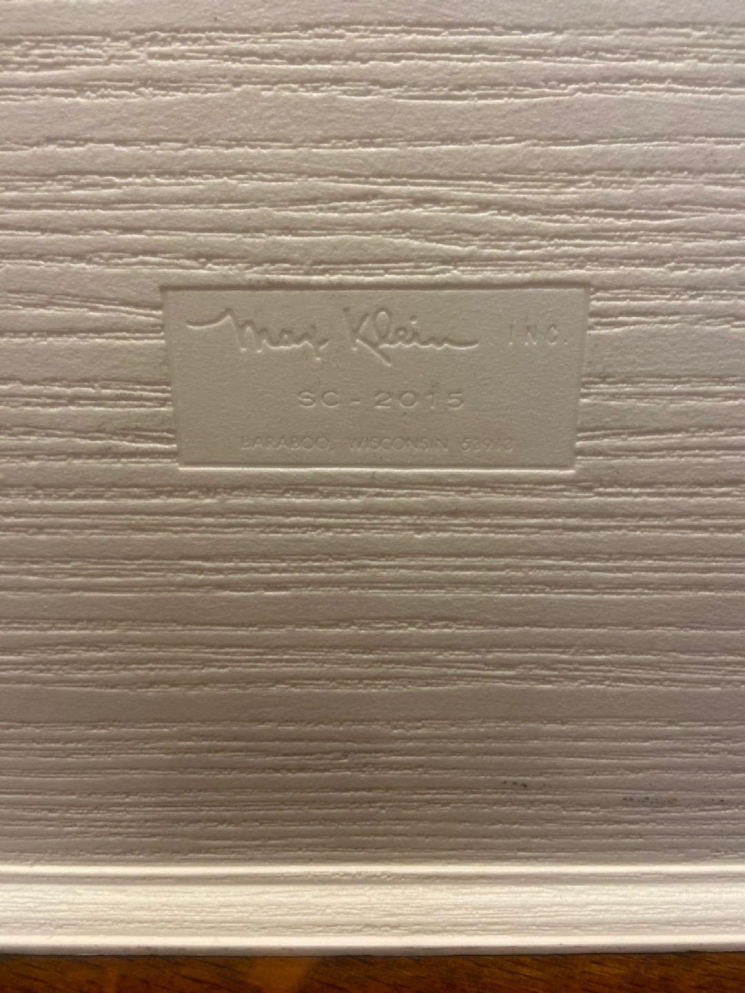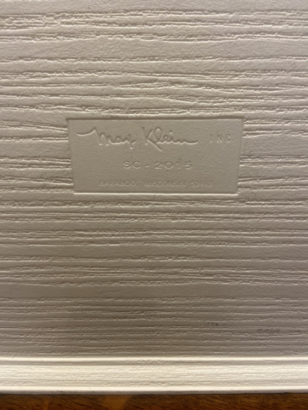 It features a unique design by Max Klein molded plastic & metal latch closure/ hinges