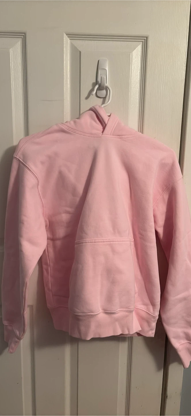 Selling a cozy pink hoodie! It's in great condition and perfect for layering or just lounging around the house. A simple and comfortable piece to add to your wardrobe