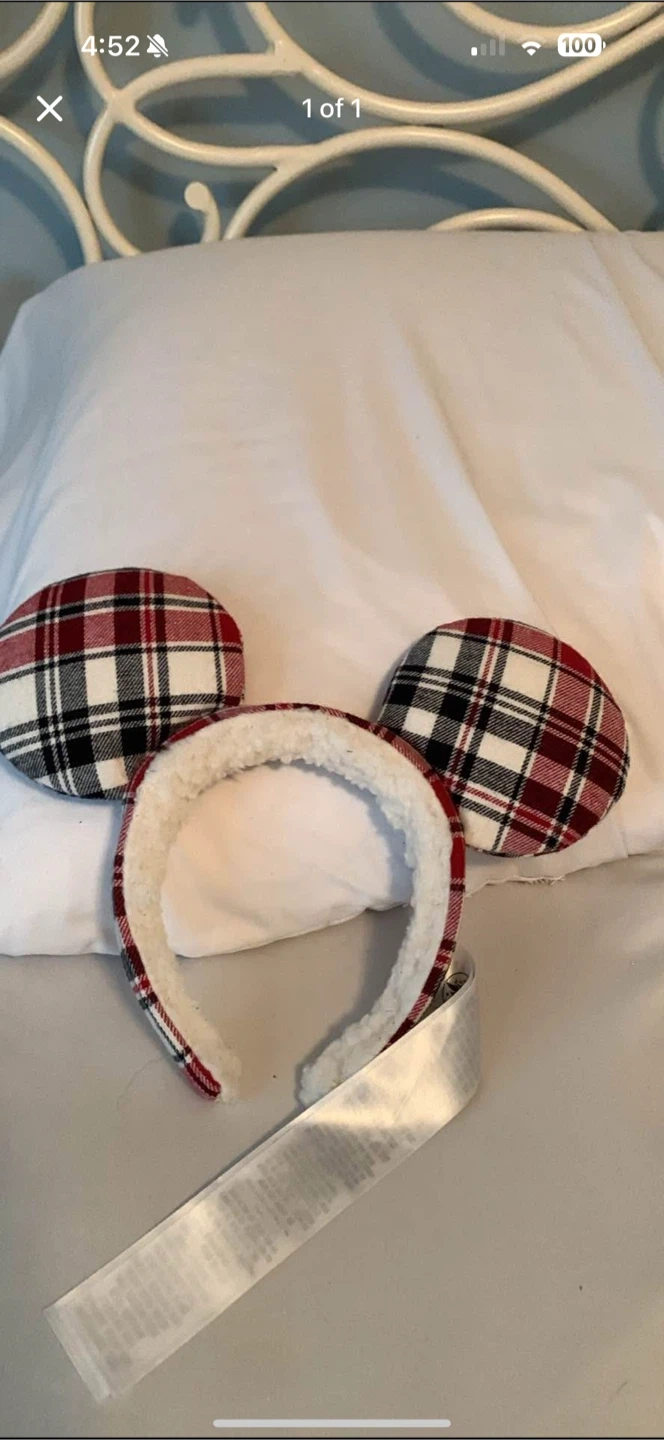Super cute Disney Mickey Mouse ears headband! Features a red, black, and white plaid pattern and soft, plush lining. Perfect for your next trip to Disney!