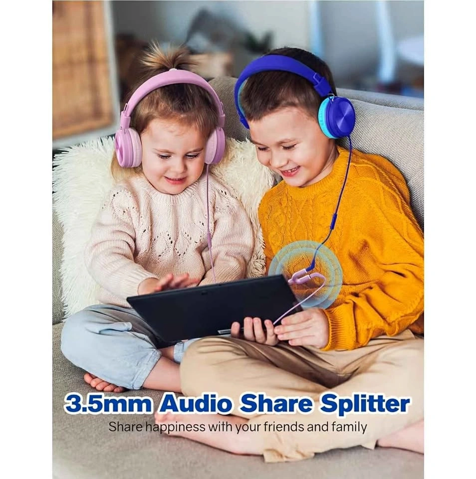 Kids Headphones with Microphone - 91dB Safe Volume Limited, Stereo Sounds, Wired On-Ear Headsets for Kids Teens with Sharing Splitter, Foldable Headset for School/Tablet/Travel New in a box