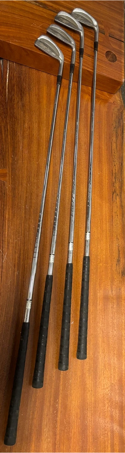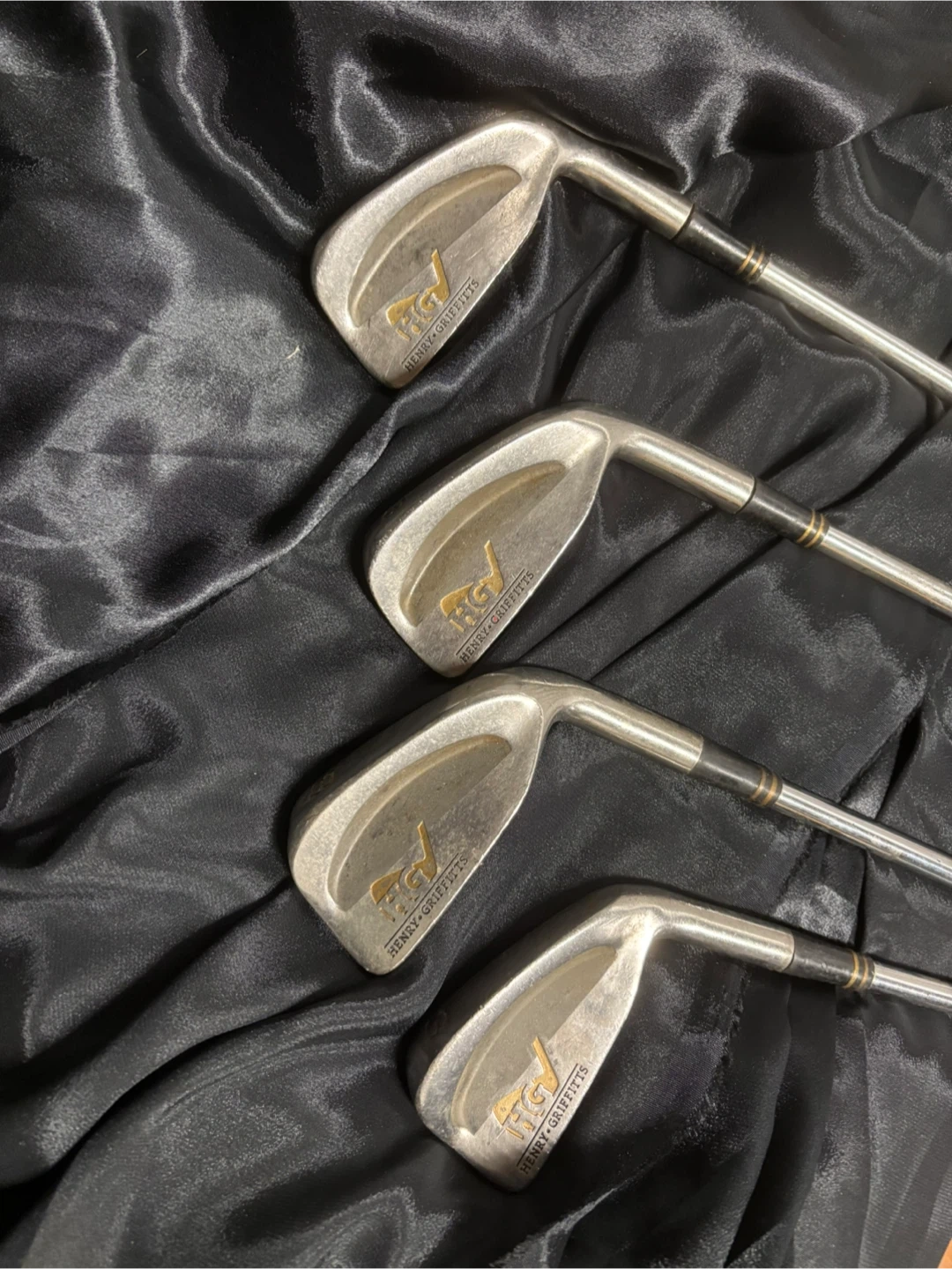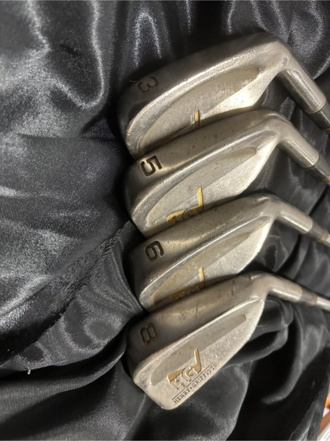91Selling a set of Henry Griffitts golf clubs. This set includes the 3, 5, 6, and 8 irons. They show some signs of use but are still in good condition for playing a round of golf