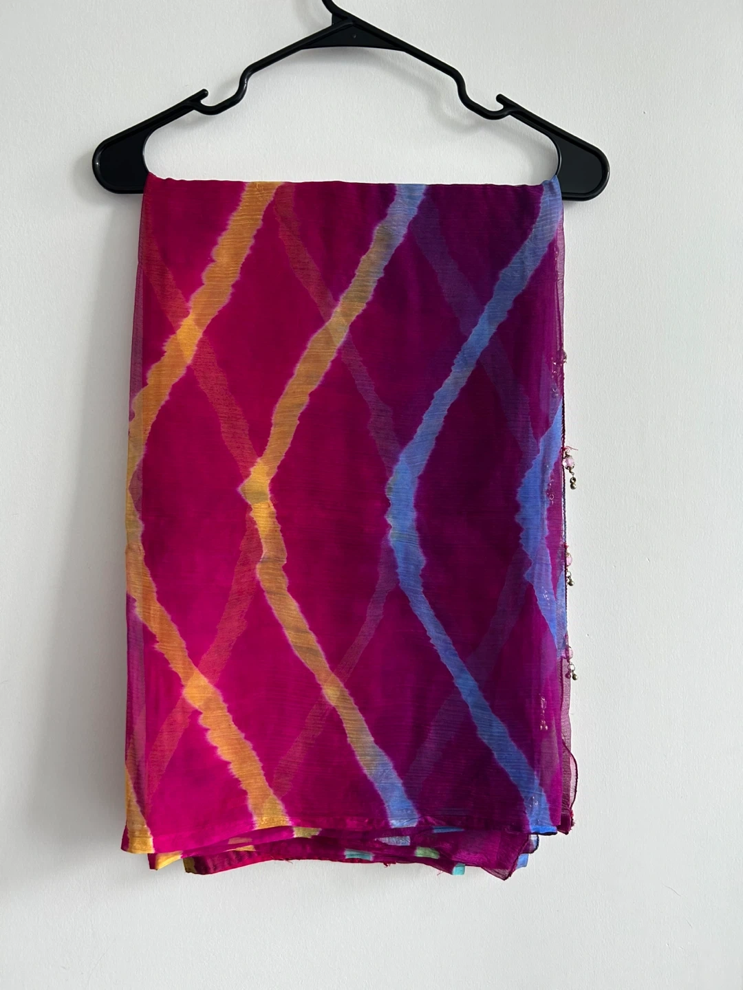 Selling a beautiful saree with a vibrant, colorful striped pattern! It's in great condition and perfect for adding a pop of colour to any occasion