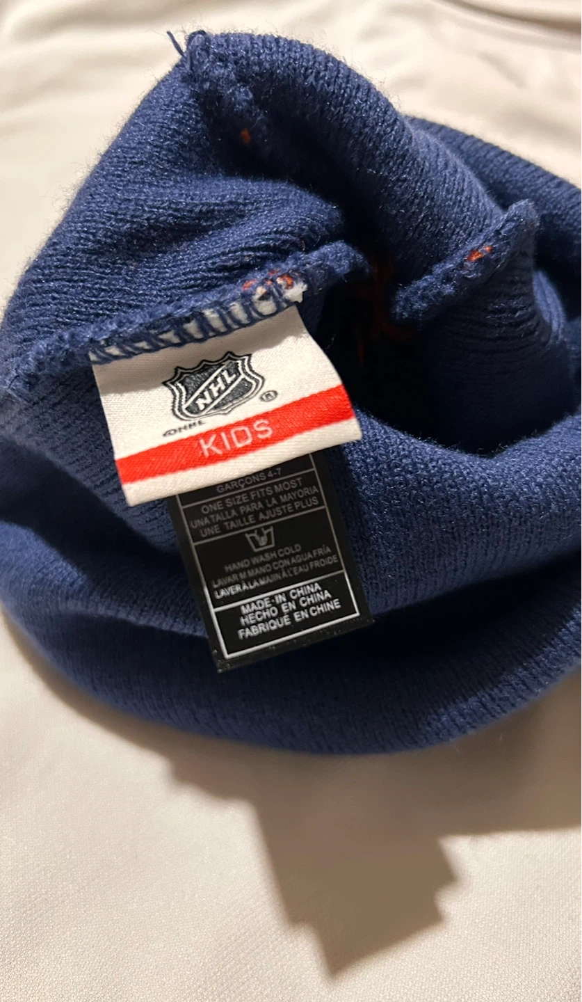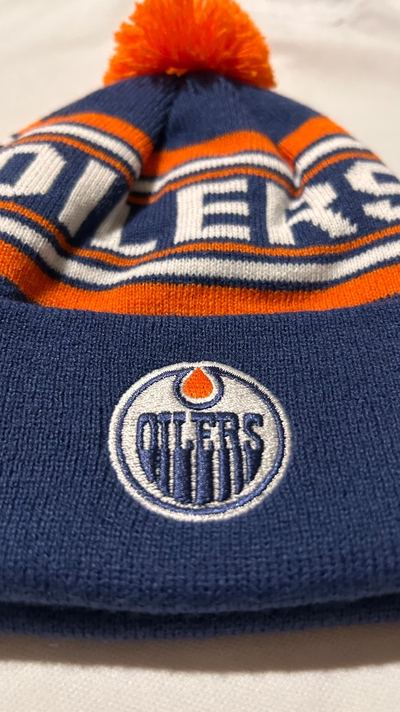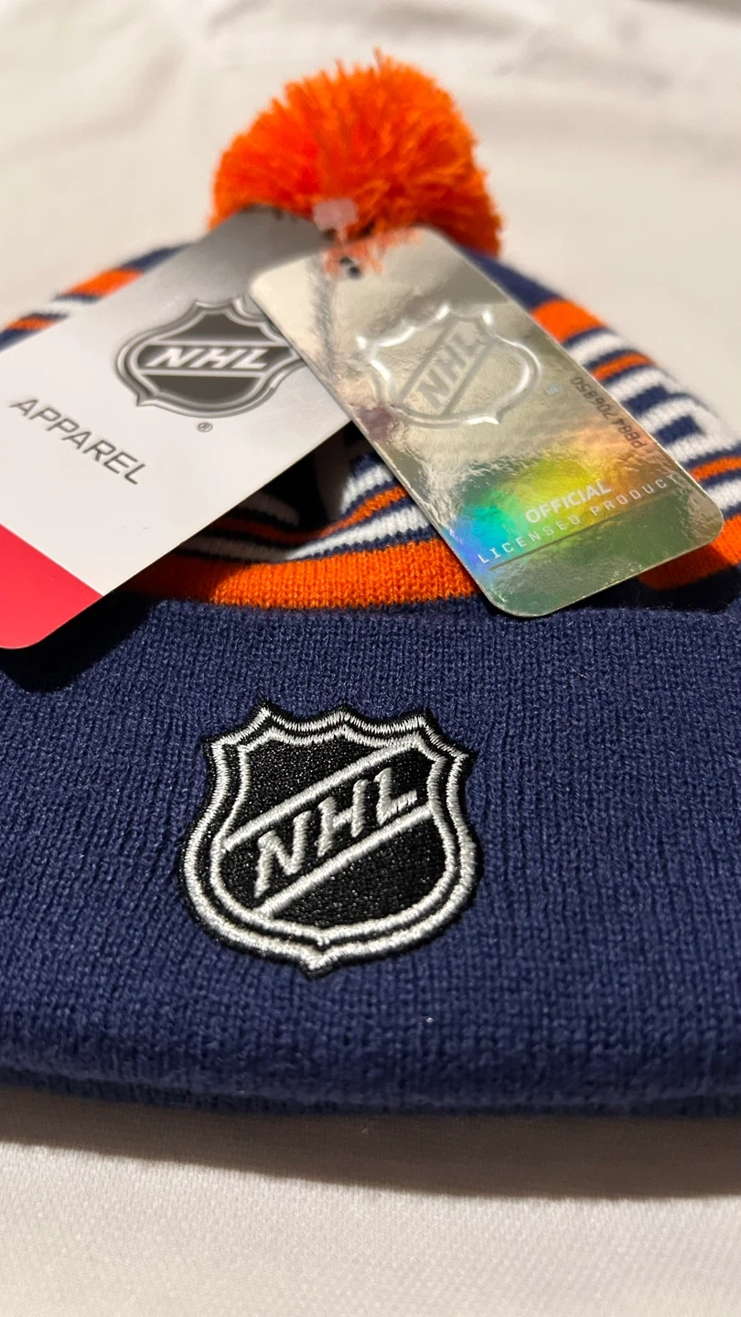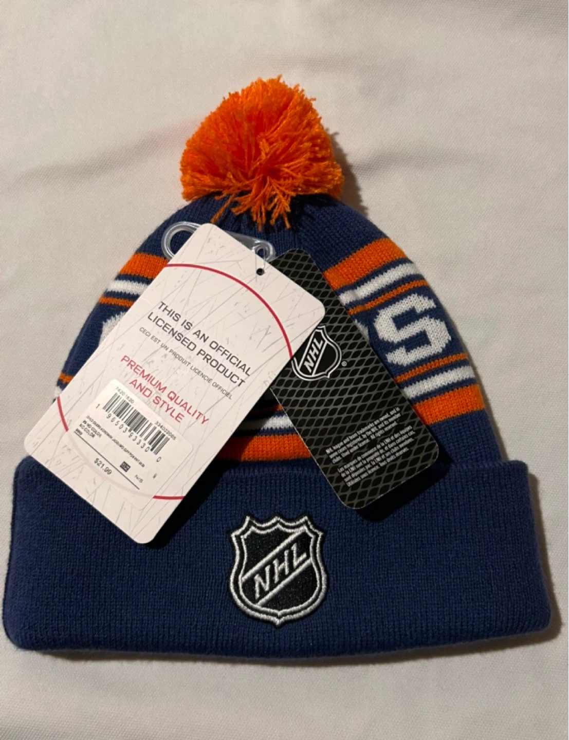 Brand new with tags - NHL Edmonton Oilers kids toque! This cozy toque features the Oilers logo and team colours, perfect for keeping your little one warm during those chilly hockey games.