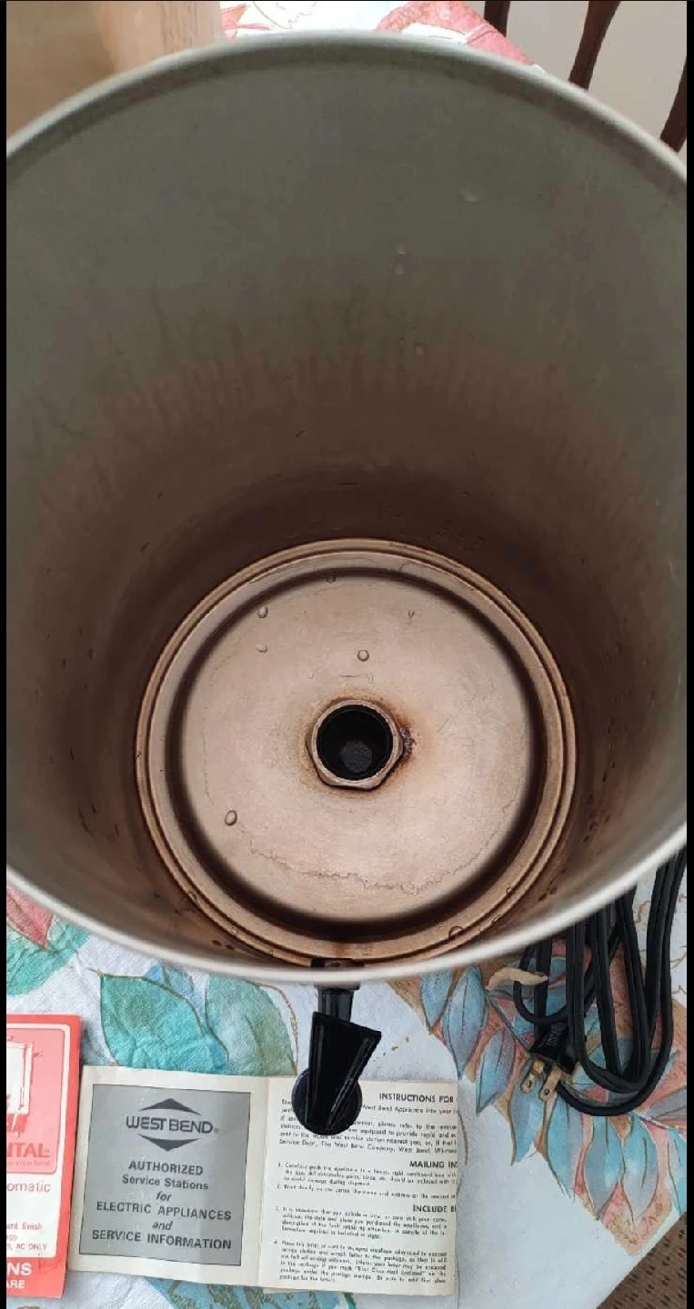Selling a West Bend Continental 36-cup automatic party percolator. The box says it's in a fresh 'n bright colour that's heat resistant and in keeping with colour trends today! Comes with the box and service information.