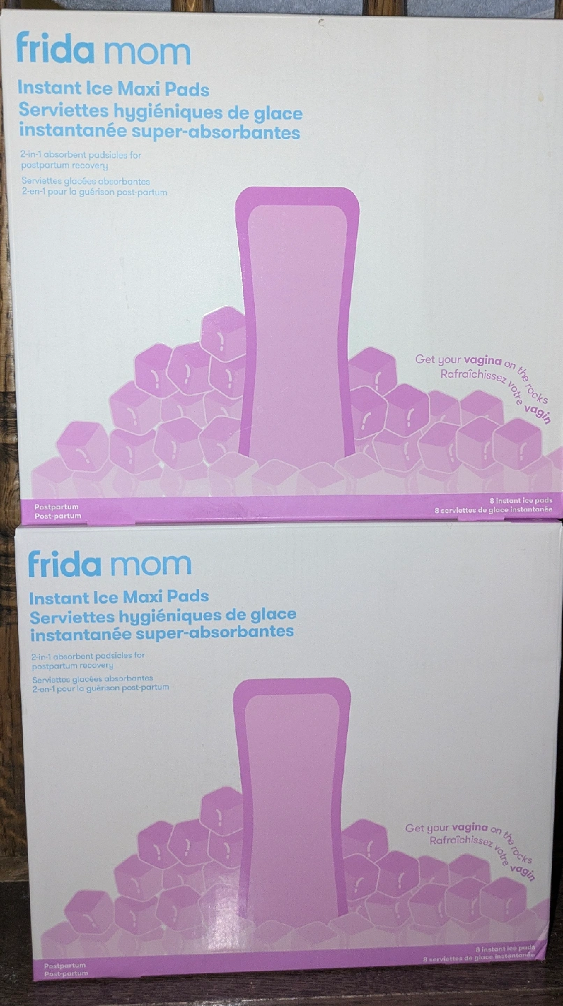 Selling two boxes of Frida Mom Instant Ice Maxi Pads! These are designed for postpartum recovery and provide instant cooling relief. Each box contains 8 instant ice pads. Perfect for to-be and new moms! 2 sealed/unopened boxes available. $36 each. Pick Up Markham - can arrange for exact location.