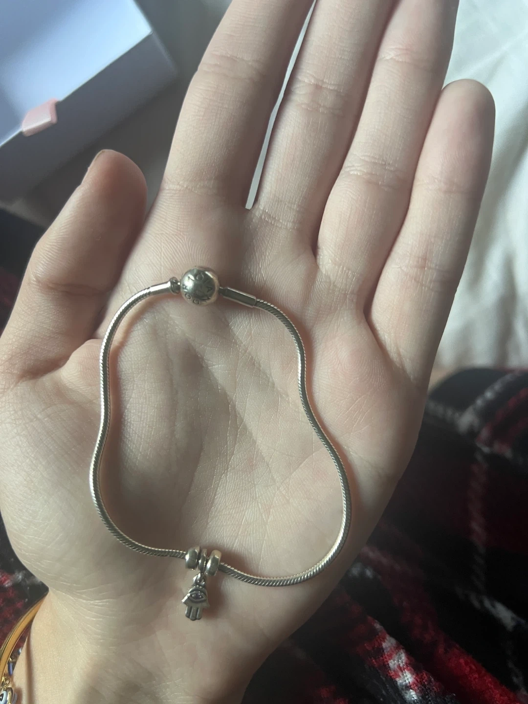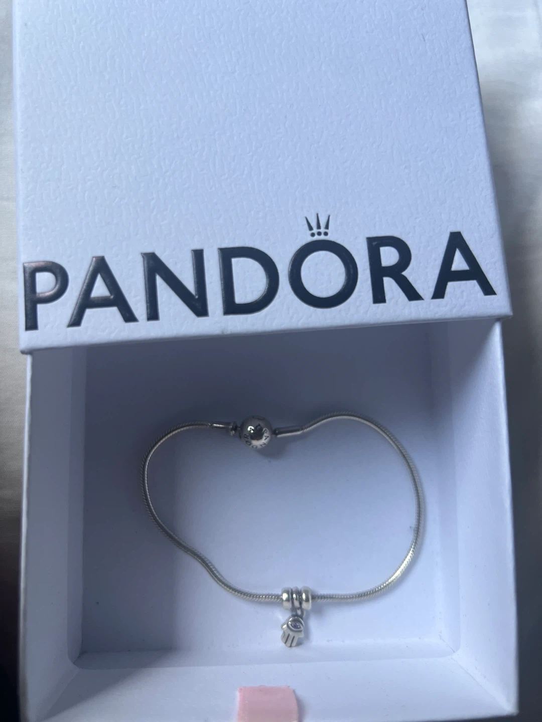 Selling a lovely Pandora silver bracelet with a Hamsa charm. It's in great condition and comes with the original Pandora box. A perfect addition to your jewelry collection!