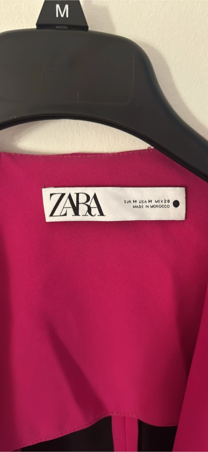 Selling a vibrant pink Zara blazer in size M. It's in great condition and perfect for adding a pop of colour to your wardrobe. Made in Morocco