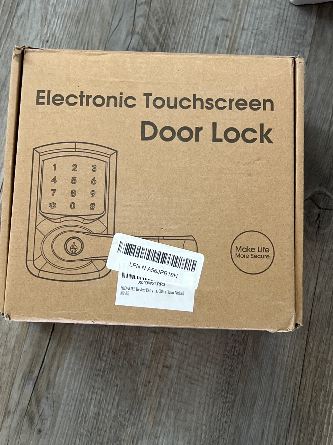 New electronic touchscreen door lock. Satin nickel finish. Keyless entry. Easy installation.