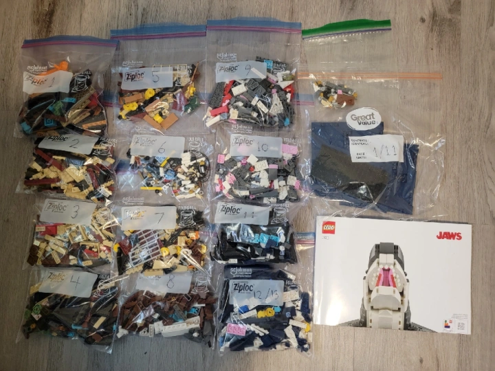 Selling a LEGO Ideas Jaws diorama set. Taken apart in reverse order and repackaged into numbered bags, to account for all pieces. in good condition, only built once.