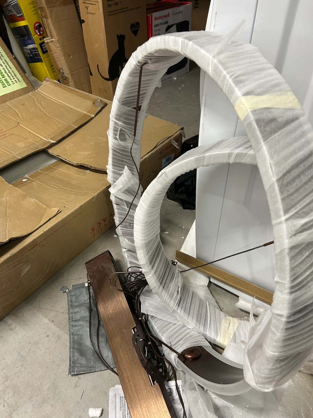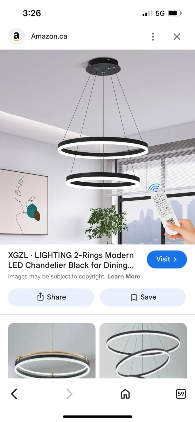 Selling a modern two-ring LED chandelier by XGZL Lighting. It's black and in great condition, still wrapped in the original packaging. Perfect for a dining room or any space needing a stylish lighting fixture!