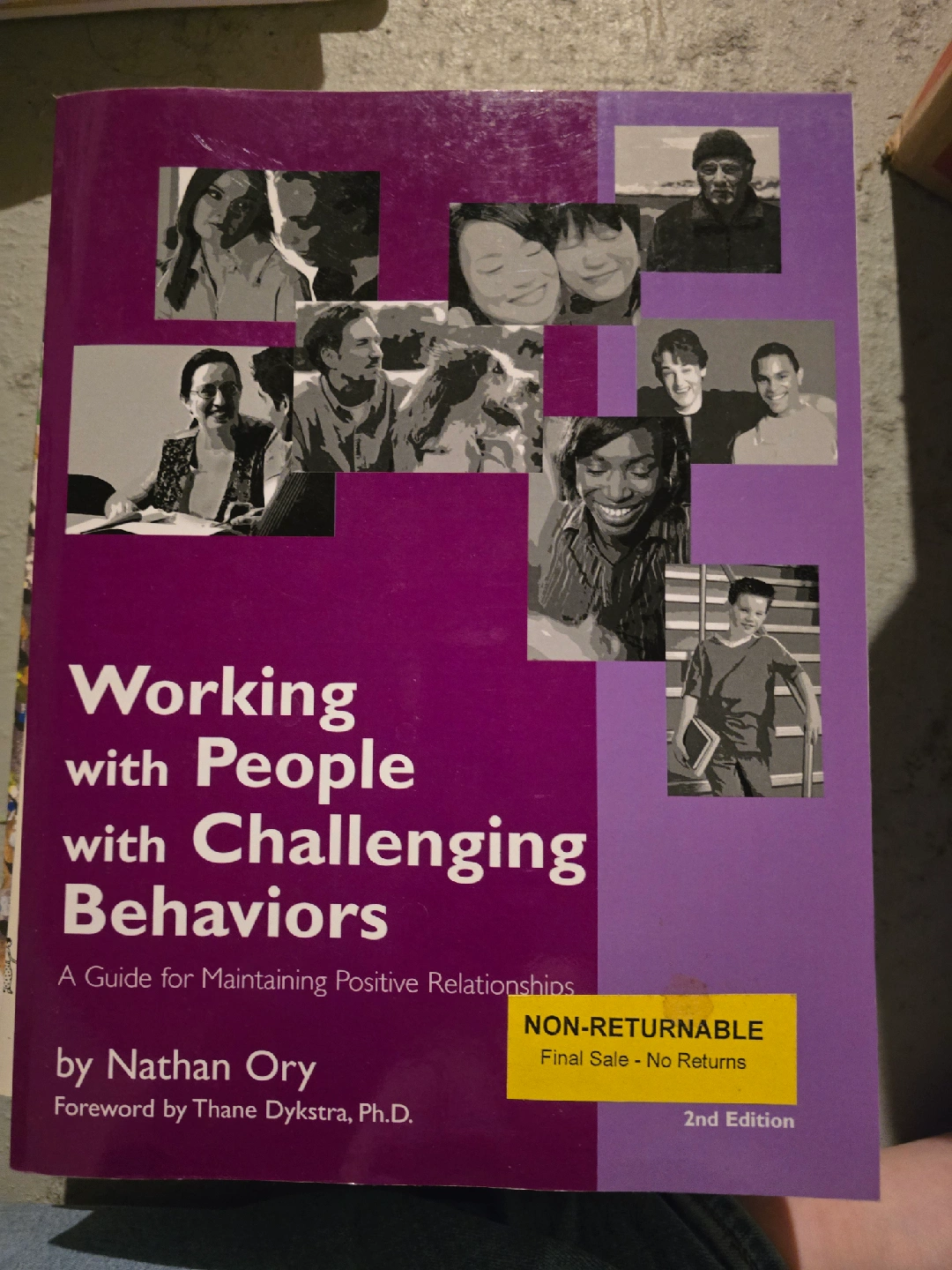 92Selling a copy of 'Working with People with Challenging Behaviors' by Nathan Ory. It's a guide for maintaining positive relationships and is the 2nd edition