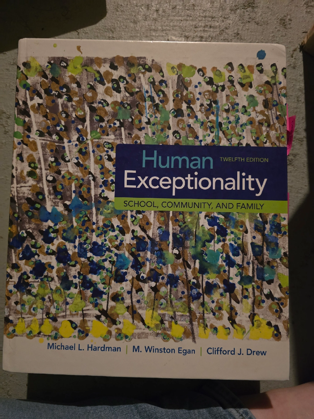 92Selling a textbook titled 'Human Exceptionality, Twelfth Edition' by Michael L. Hardman, M. Winston Egan, and Clifford J. Drew It covers the topic of human exceptionality within the context of school, community, and family