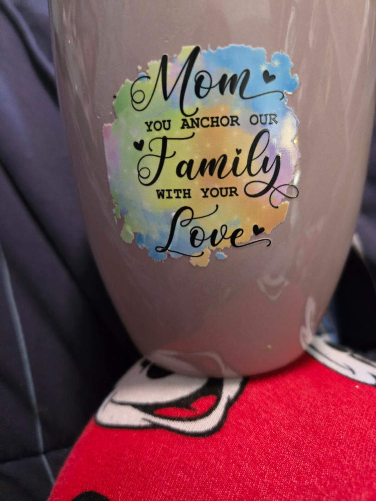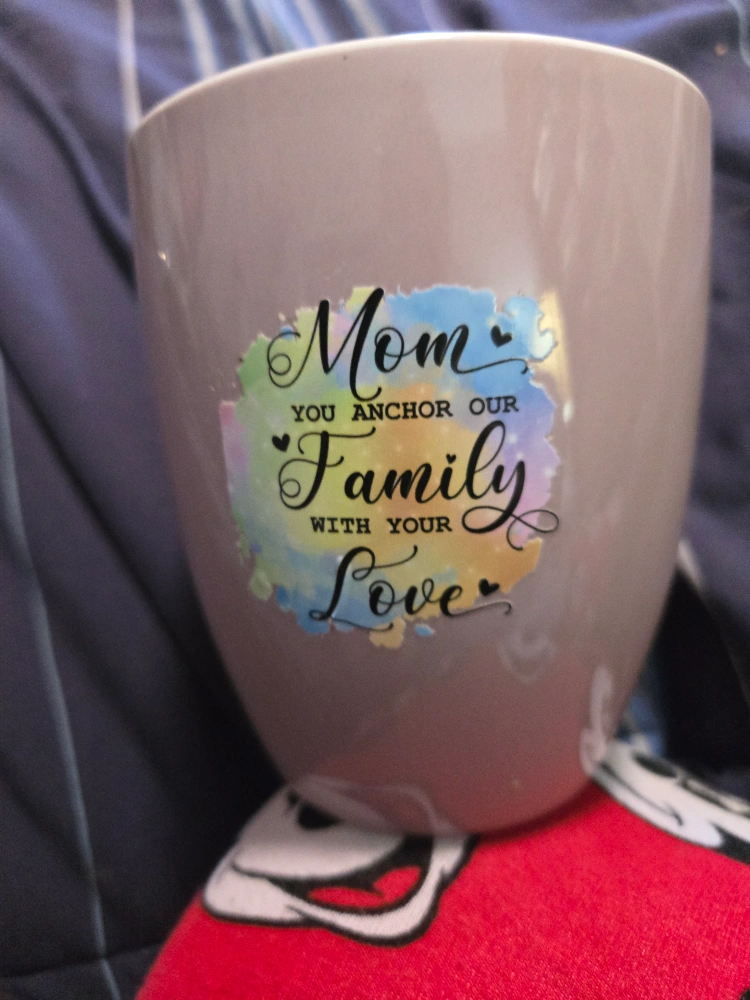 A sweet mug that says 'Mom you anchor our family with your love' on one side and 'when God made moms he picked the best one for me' on the other! It's in great condition and ready for a new home