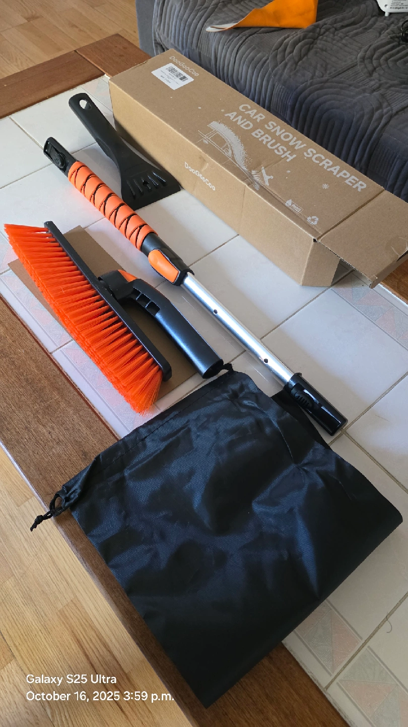 167Get ready for winter with this DooGooCoo car snow scraper and brush! It's in great condition and comes with all the accessories, including the ice scraper, brush, and storage bag. The box is included as well. Features: - Extendable snow brush - 360° pivoting brush head - Silicone grip for effortless one-swipe clean - Size: Large