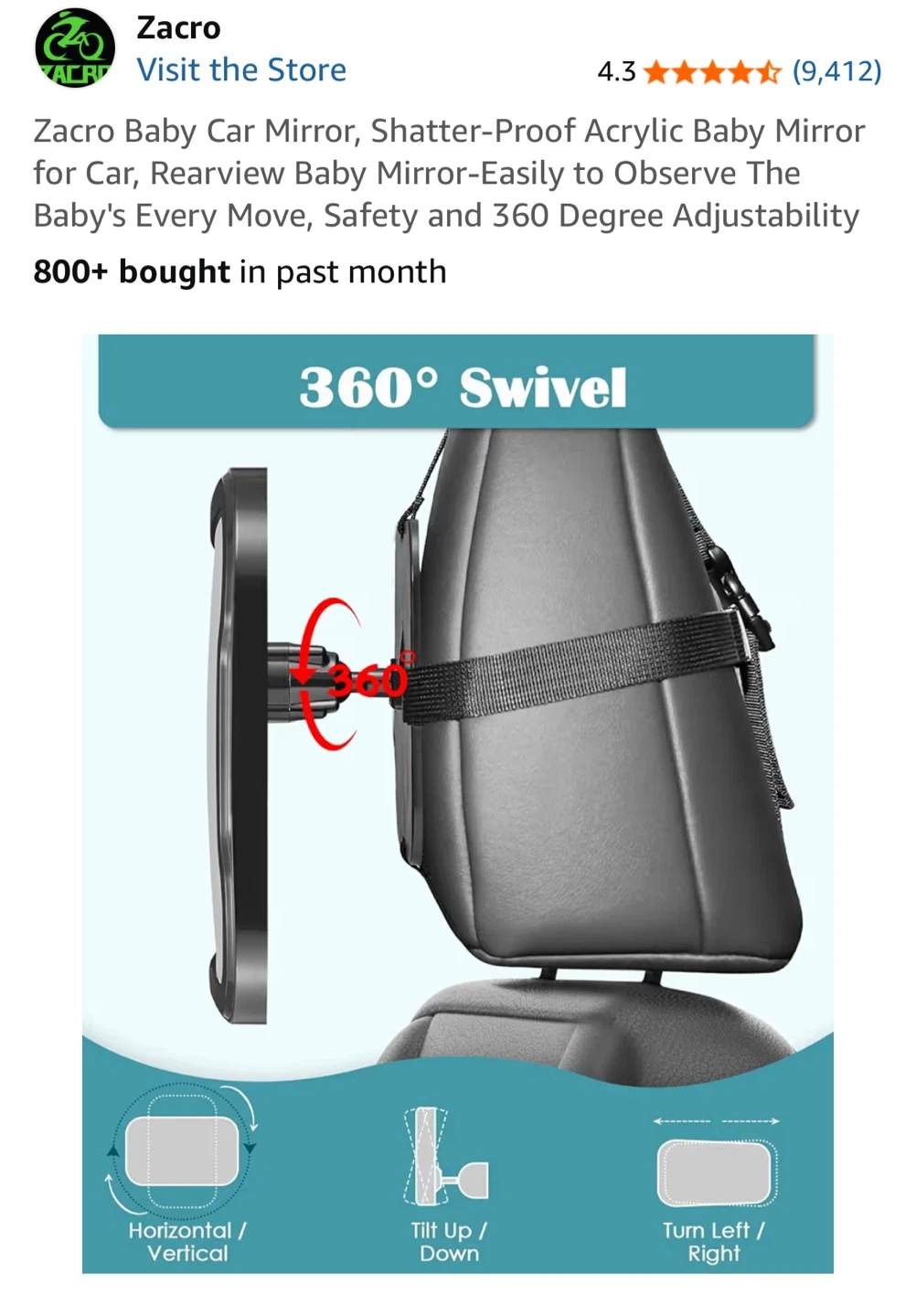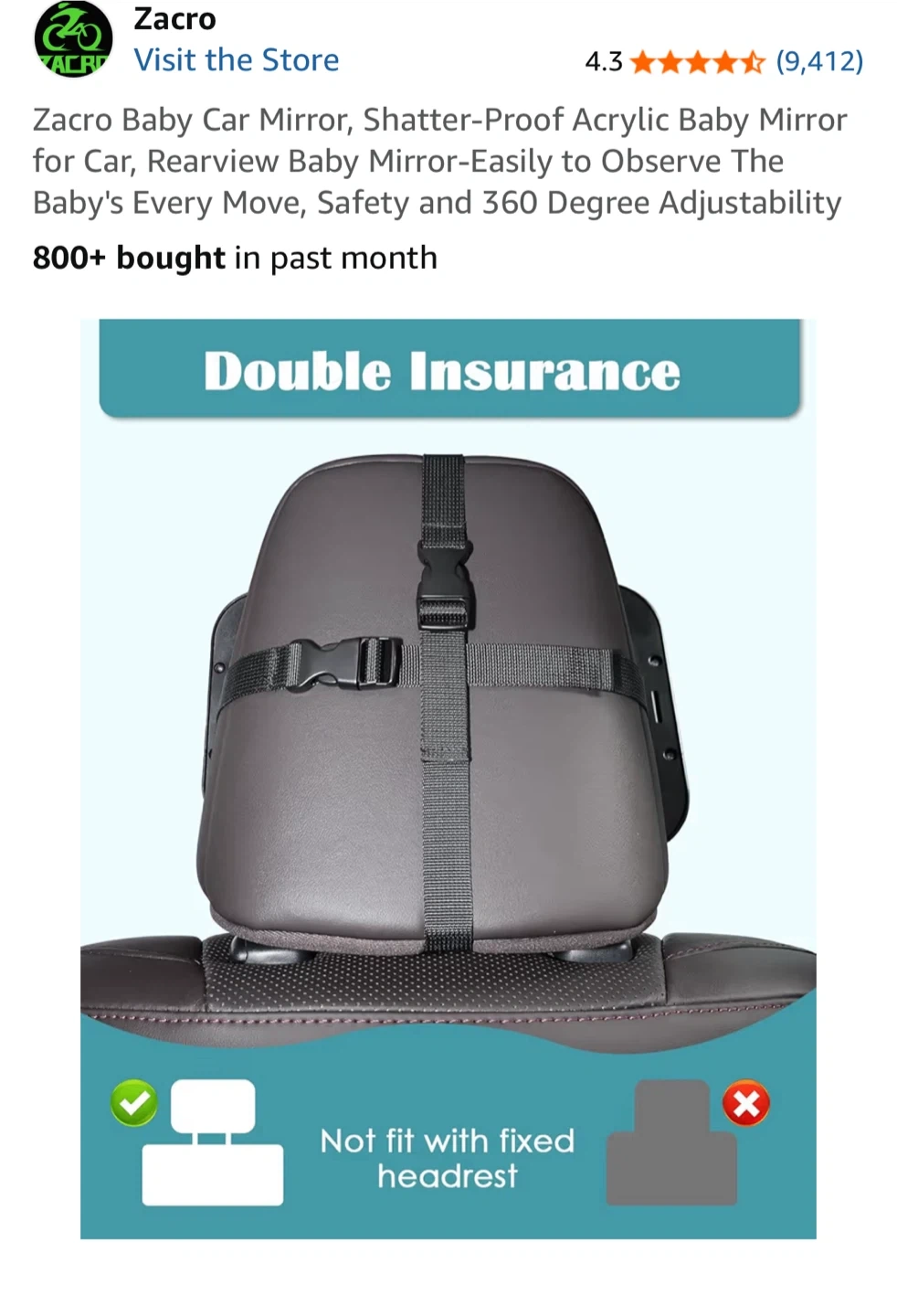 Keep an eye on your little one with this Zacro baby car mirror. It's designed to easily observe your baby's every move while ensuring safety with its shatter-proof acrylic mirror.