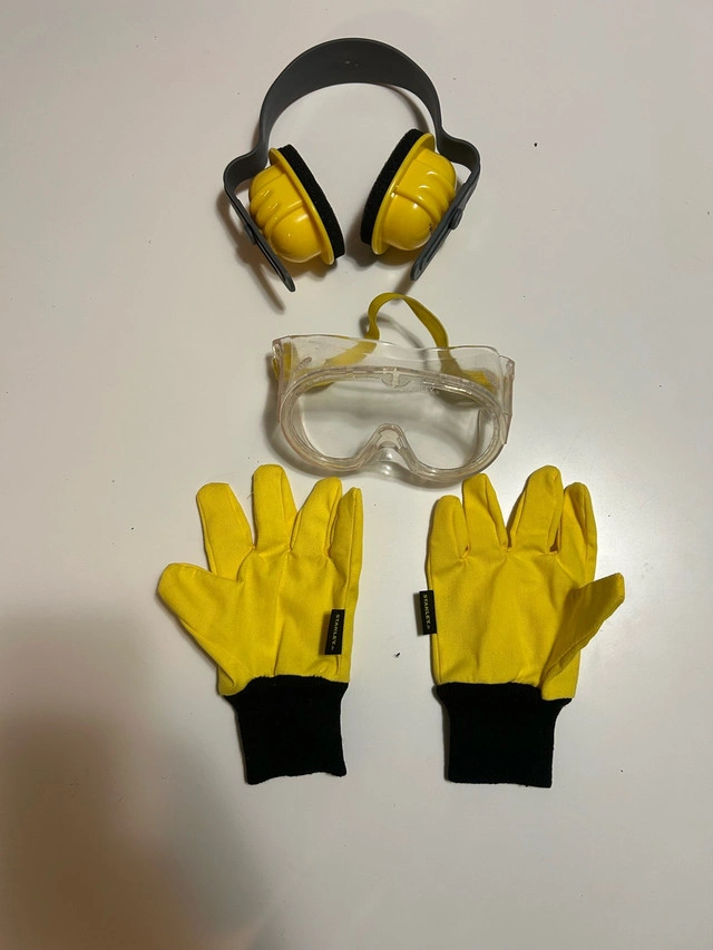 Equip your little builder with this safety kit, including safety glasses for protecting their peepers, earmuffs to keep the noise at bay, and gloves to keep their little hands safe. It's a great way to start them young with safety habits! This Stanley Junior set is designed for kids, including safety glasses, ear protection, and work gloves to keep your little one safe during their creative projects. * Includes: Safety glasses, ear protection, and work gloves * Condition: New Let your child explore and create with this perfect safety set! And remember, if the ad's still up, the set's still available!