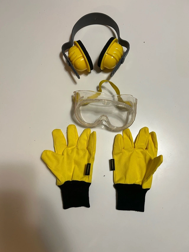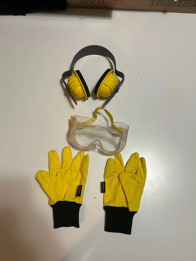 Equip your little builder with this safety kit, including safety glasses for protecting their peepers, earmuffs to keep the noise at bay, and gloves to keep their little hands safe. It's a great way to start them young with safety habits! This Stanley Junior set is designed for kids, including safety glasses, ear protection, and work gloves to keep your little one safe during their creative projects. * Includes: Safety glasses, ear protection, and work gloves * Condition: New Let your child explore and create with this perfect safety set! And remember, if the ad's still up, the set's still available!