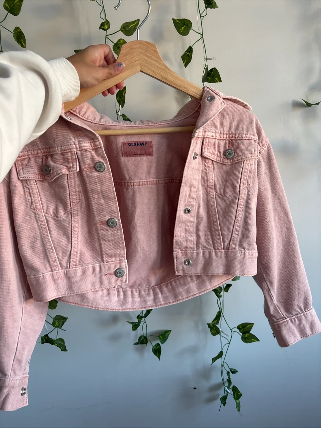 Selling a cute pink denim jacket from Old Navy! It's a size 6-7 and in great condition. Perfect for adding a pop of colour to your wardrobe!