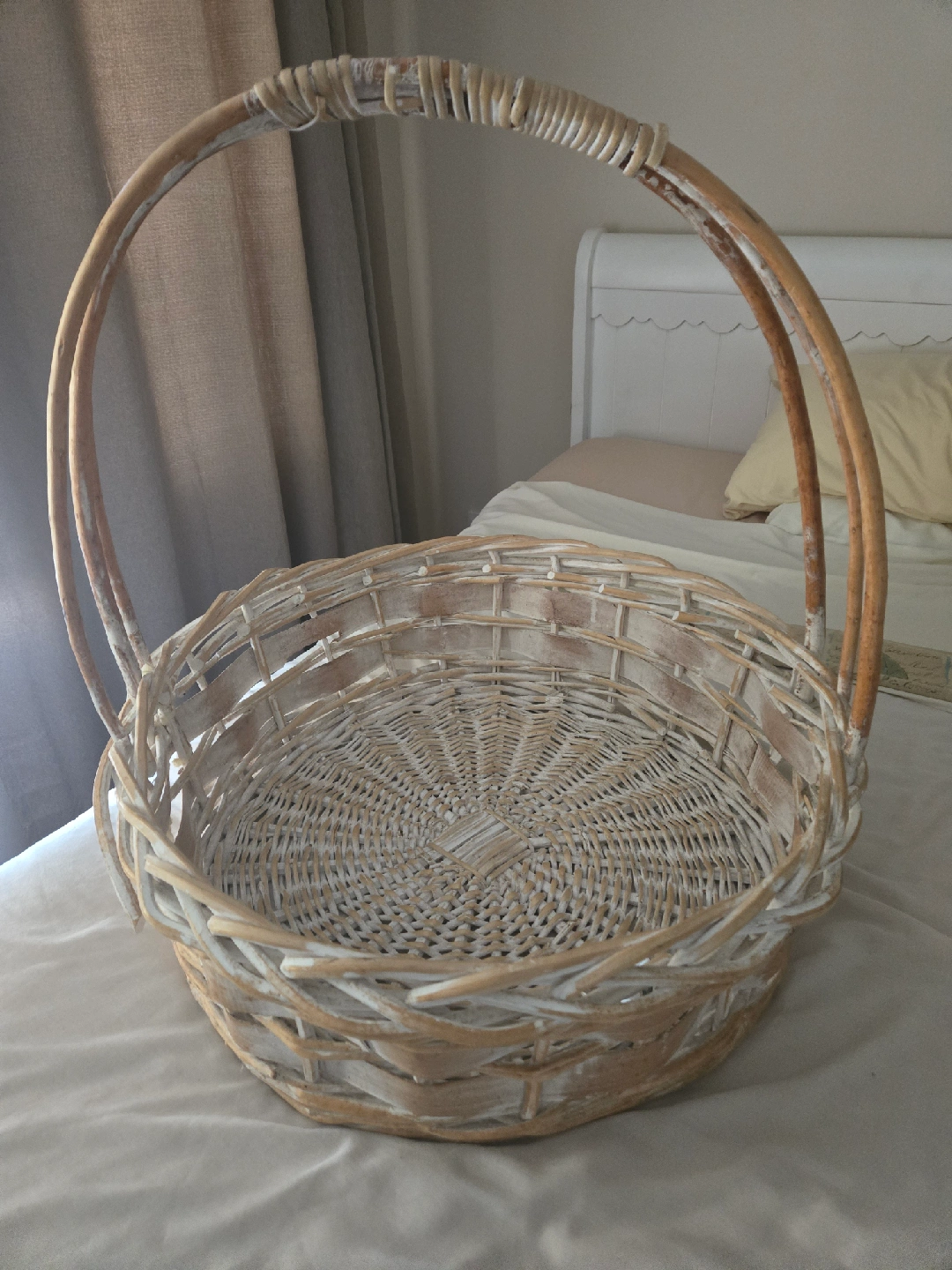 56Selling a charming wicker basket with a handle. It's perfect for storage, decor, or creating a lovely gift basket. The basket is in great condition and ready for a new home decluttering