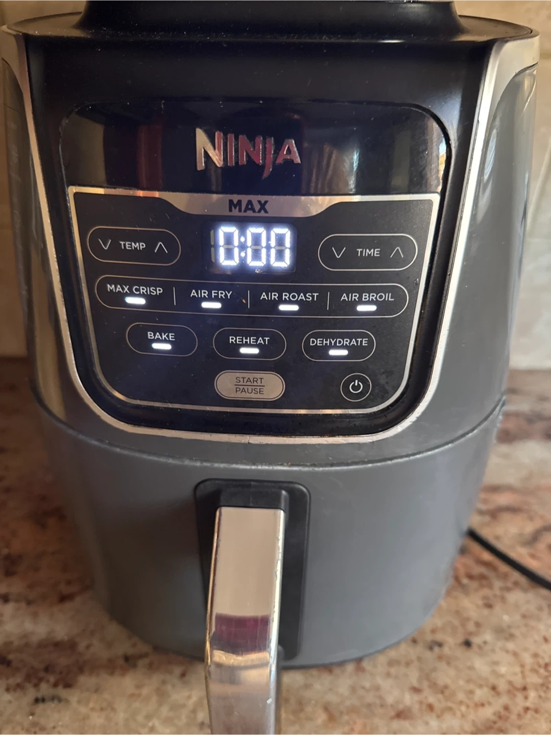 Selling a Ninja Max Air Fryer. It's in good working condition and ready for a new home! It has multiple functions like Max Crisp, Air Fry, Air Roast, Air Broil, Bake, Reheat, and Dehydrate. Perfect for quick and easy meals