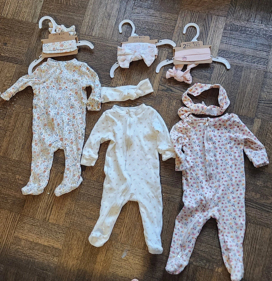 3 rompers along with head band