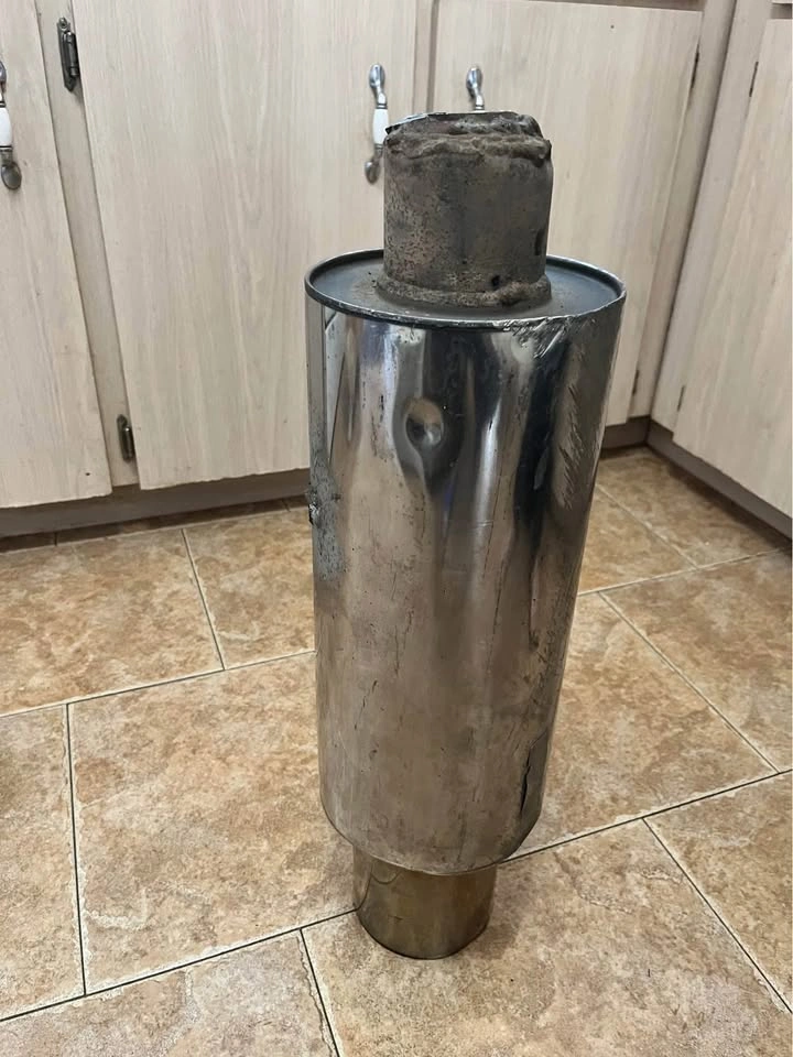 10HKS muffler, 3” inlet/5” outlet. Used to be on a 93 RX-7. Good condition.