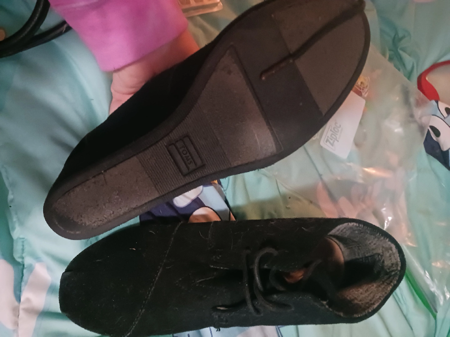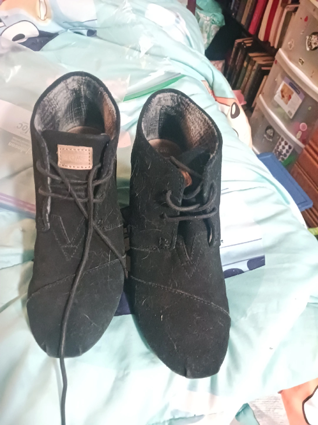 10Selling a pair of TOMS black suede ankle boots in size 9.5. They're in good condition and ready for a new home! These are super comfy and stylish, perfect for fall weather