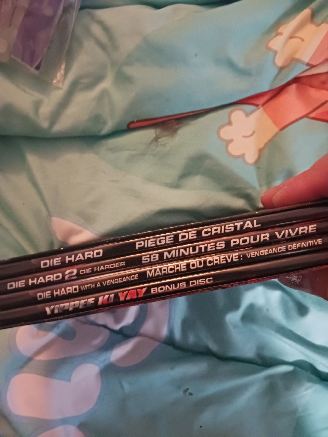 10Selling the Die Hard Collection on DVD, featuring Bruce Willis! This includes: - Die Hard - Die Hard 2: Die Harder - Die Hard with a Vengeance - Yippee Ka Yay Bonus DVD Perfect for any action movie fan
