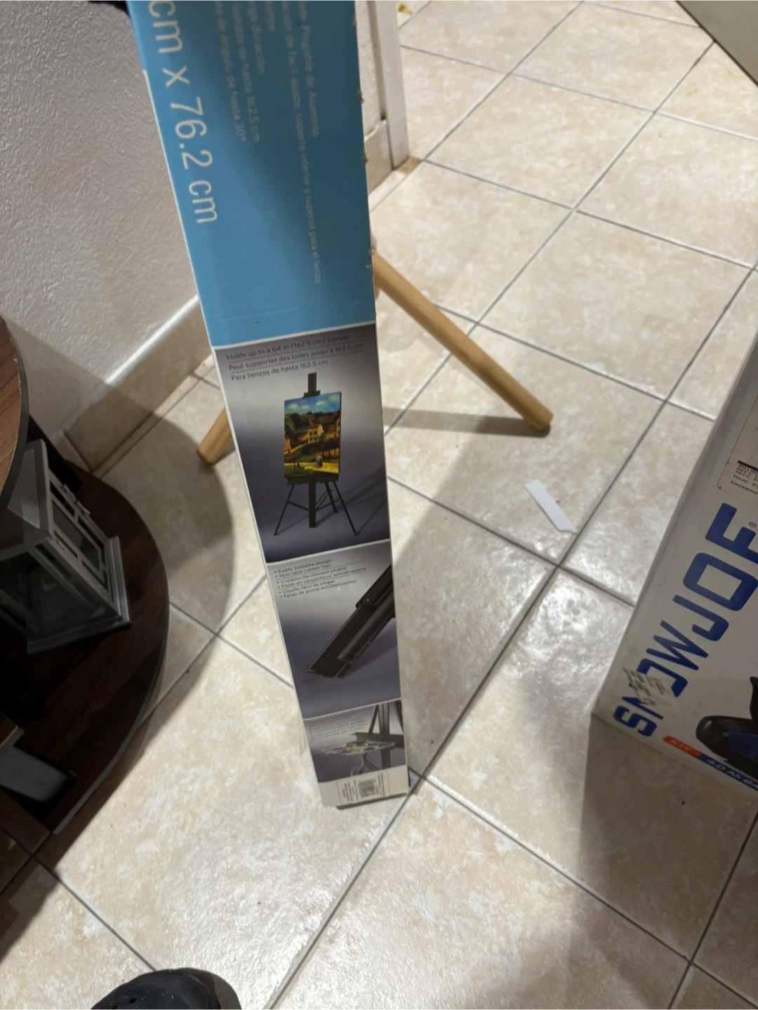 Selling an Artist's Loft Aluminum Gigante Studio Easel! It's an aluminum folding studio easel that's easy to adjust and is extremely durable. It holds up to a 64 in (162.5 cm) canvas and has an adjustable angle up to 30°. The dimensions are 77 in x 34 in x 30 in (195.5 cm x 86.3 cm x 76.2 cm)