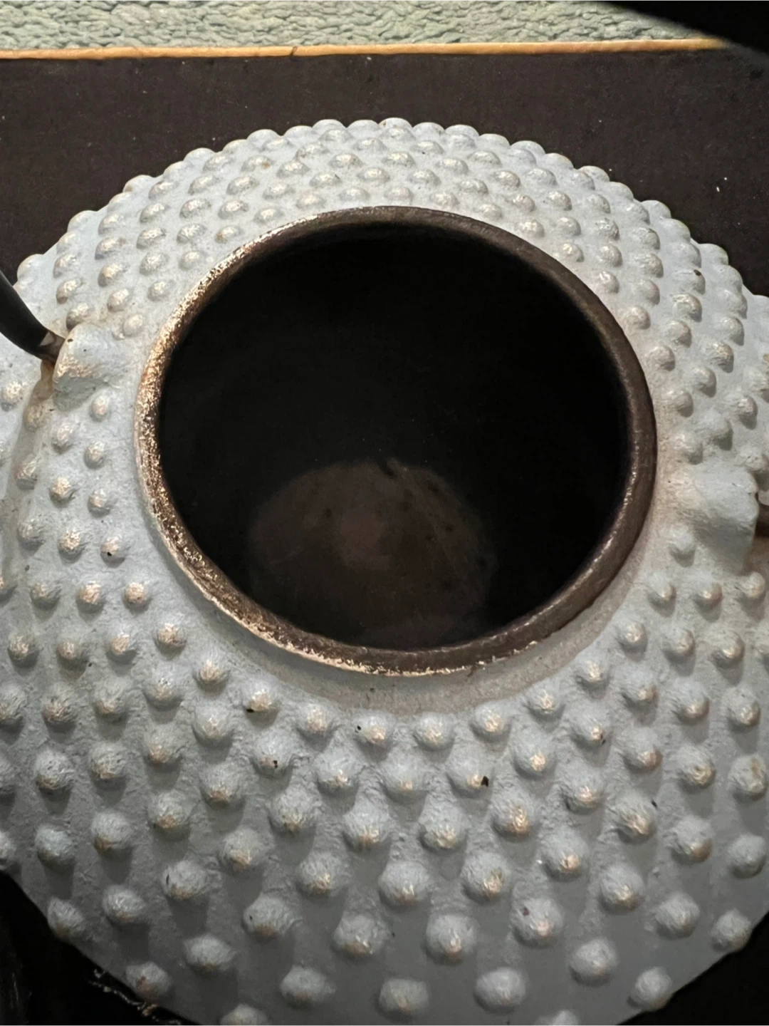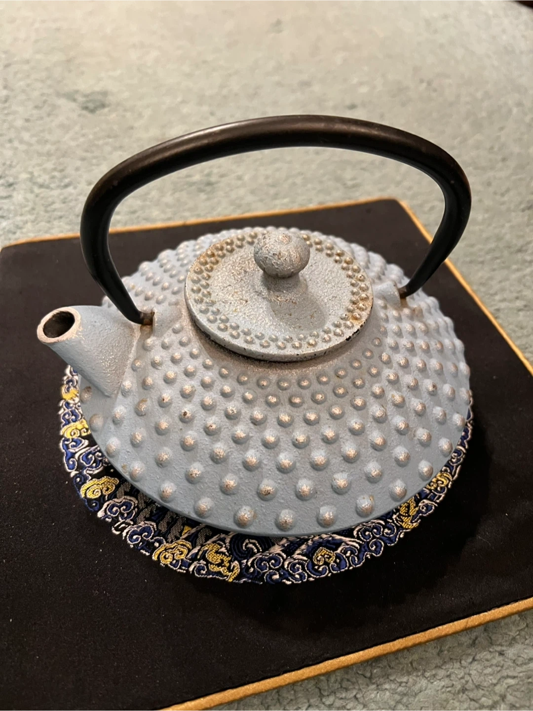 Vintage Silver Blue Cast Iron Teapot with Handle