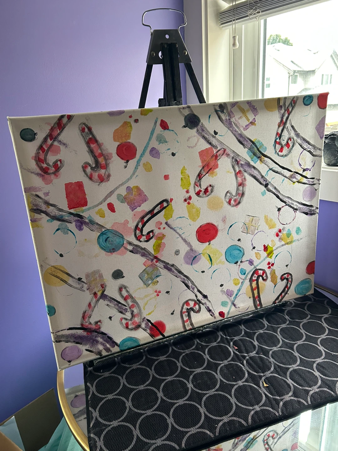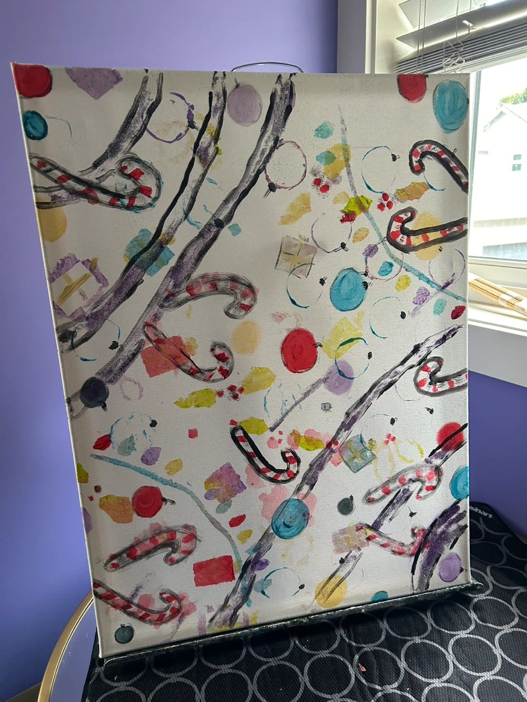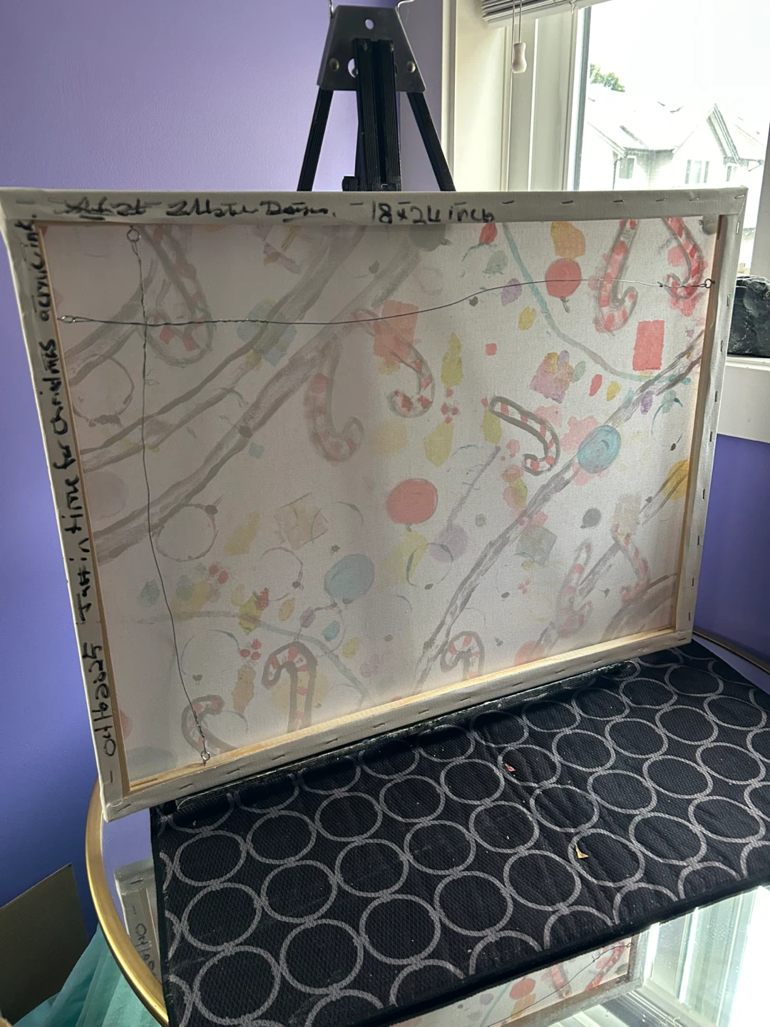 18x24 inch acrylic , ink and glitter. This painting can be hung two ways. It’s a festive decoration just in time for Christmas. Cash or e-transfer only. Sorry no refunds. Payment to be made at pick up. If item needs to be shipped then customer pays for shipping.