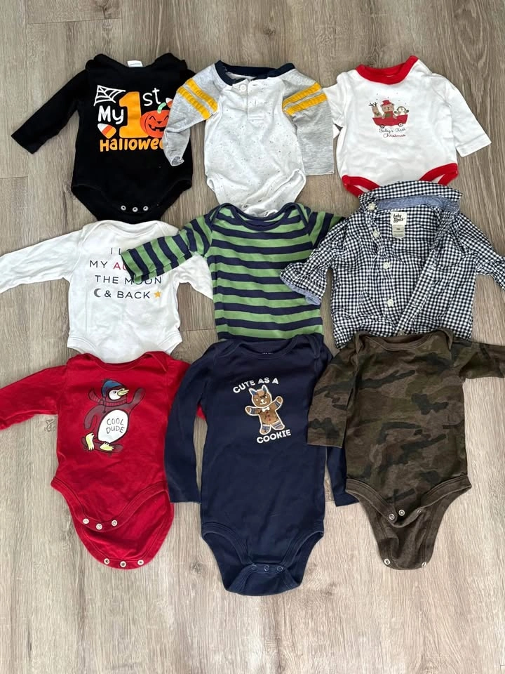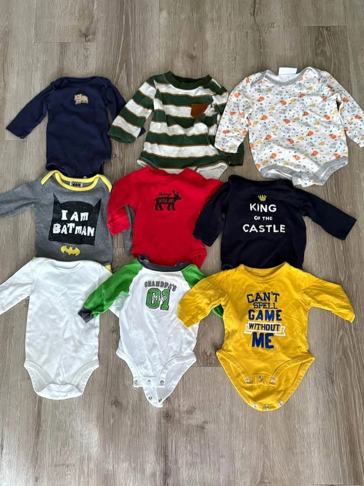 I’m selling long sleeve onsies for 1$ each, some are used but only a couple times as my son outgrew them quick. Some are also never worn. Sizes newborn, 0-3 and 3-6 months