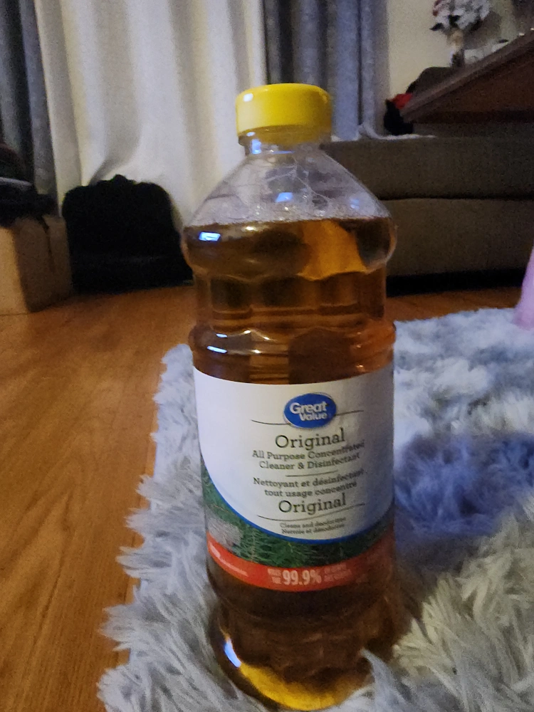 Selling a bottle of Great Value Original All Purpose Concentrated Cleaner & Disinfectant. It cleans and disinfects, killing 99.9% of germs