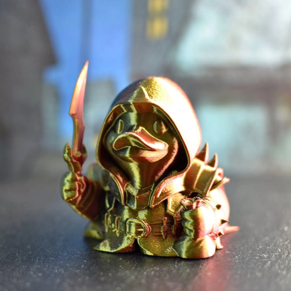 15Quiet feet, louder quacks. Master of stealth and shiny trinkets—if something’s missing, check the Rogue’s nest first. Great for display, decoration, or as quirky tabletop companions Lightweight yet sturdy design Perfect For: Dungeons & Dragons players and GMs Fantasy lovers and collectors Fun desk or shelf décor Unique gamer gifts Duck Duck Jeep! Check out my other listings for the rest of the party! *CAUTION* These prints do have small parts that can be swallowed. Not recommended for small children or pets. PLA is sensitive to UV rays and heat exposure over 140 degrees F. Warping is possible when placed in the sun for long periods. Please note that the 3D printing process will leave layer lines running along its surface. We check every item for quality, but small variations will be present making every item unique. This model was designed by FatesEnd and I have a license to sell physical prints of their work. Note: These are fan-made creations and are not officially licensed merchandise. Colours may vary slightly depending on filament availability.