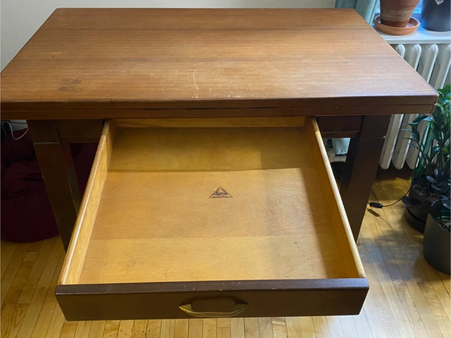 It's a sturdy desk with a large drawer for storage