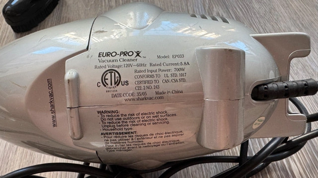 The Shark Euro-Pro X Hand Held Vacuum Model 600W Bagless is a powerful and convenient cleaning tool for any household. With a 1000 Watt Turbo Suction motor, this handheld vacuum offers efficient cleaning performance. The included accessories such as the filter, nozzle, shoulder strap, extension wand, upholstery brush, and crevice tool make it versatile for various cleaning tasks. Designed with a HEPA filter and 11 ounce capacity, this Shark vacuum ensures a thorough and hygienic cleaning experience. Lightweight at less than 10 lbs, this corded vacuum is easy to maneuver and use. Perfect for quick clean-ups or detailed cleaning jobs, the Shark Euro-Pro X Hand Held Vacuum is a reliable addition to any home cleaning. For Sale By: Owner