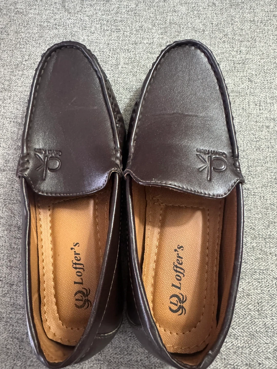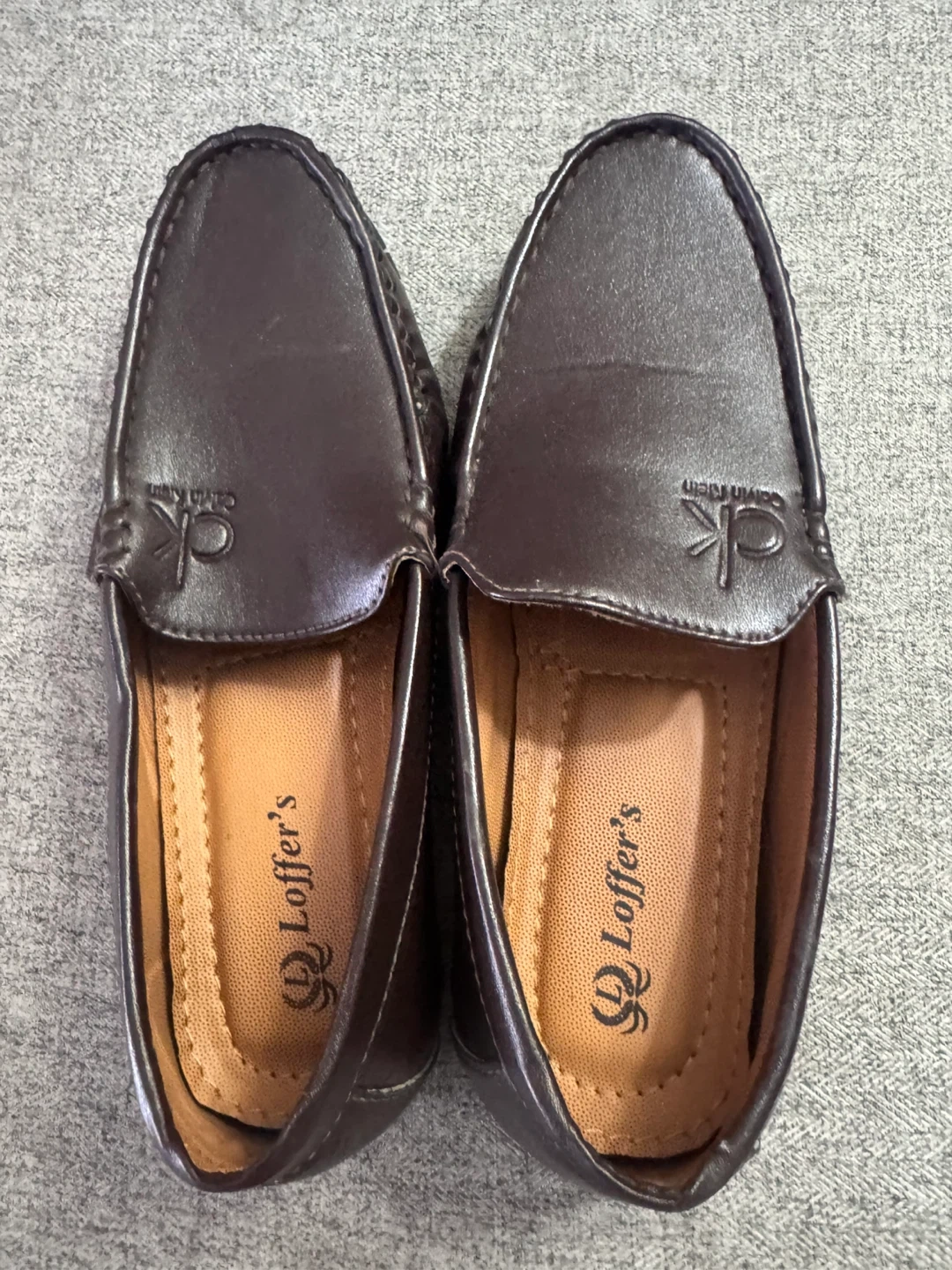 62Here are some stylish Calvin Klein brown loafers in a size 5! They're in great shape and ready for a new home. The insole says 'Loffer's'.