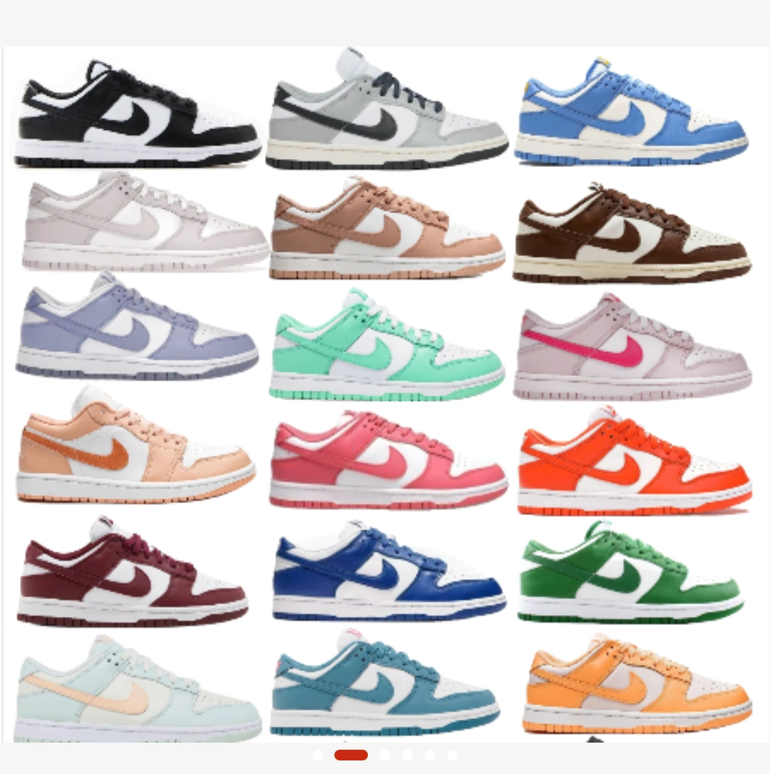 Check out these stylish Nike Dunk Low sneakers! They come in a variety of colours. Perfect for adding a pop of colour to your wardrobe