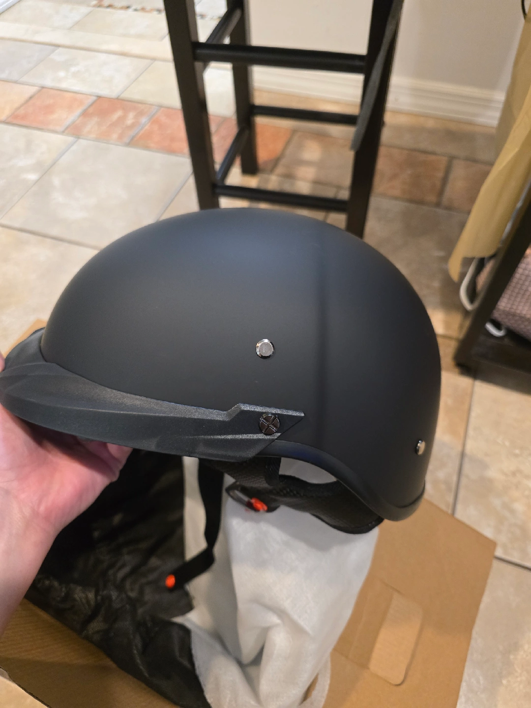 65This is a Virtue MD-513-T motorcycle half helmet in matte black, size medium. It comes with the original box and packaging. A great helmet for cruising!