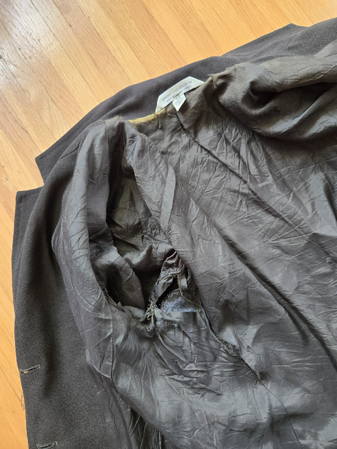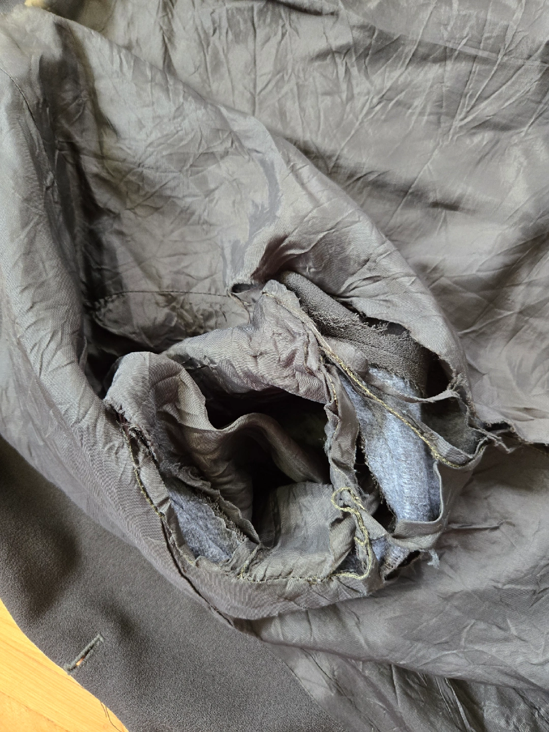 Price reflects tears on the inside lining. Doesn't affect fit and otherwise great condition :)