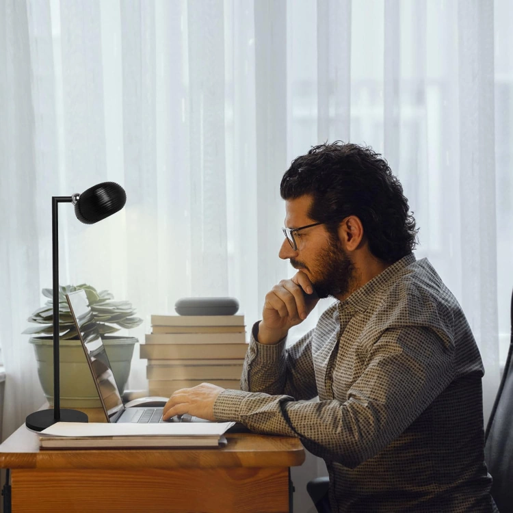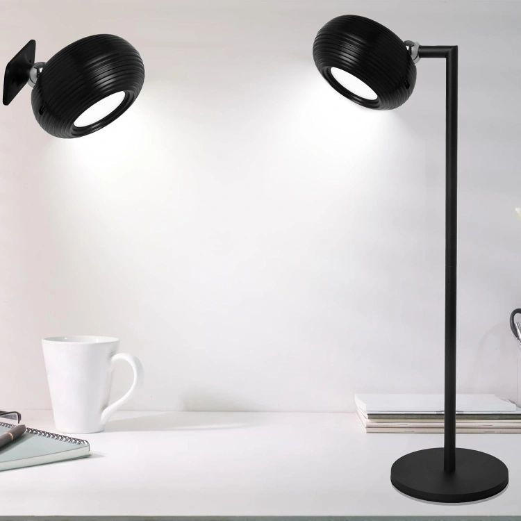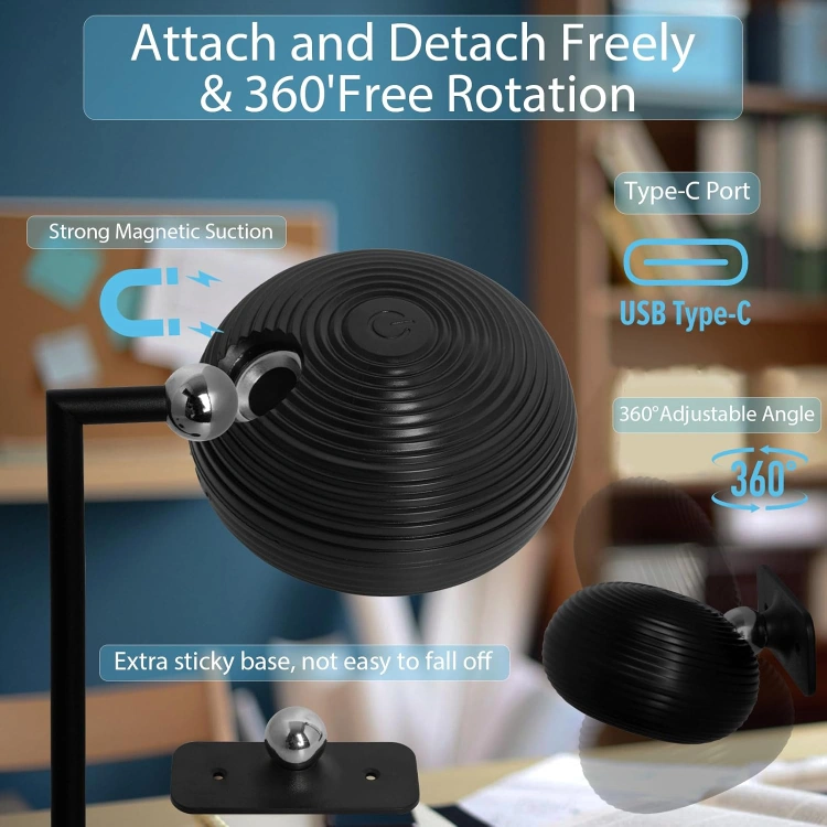 This is a sleek black desk lamp with a magnetic attachment feature for flexible positioning. It also has 360° free rotation and a USB Type-C port for power. The base is extra sticky, so it won't fall off easily!