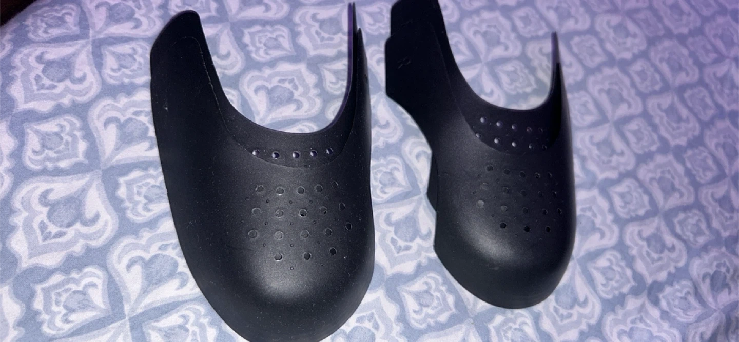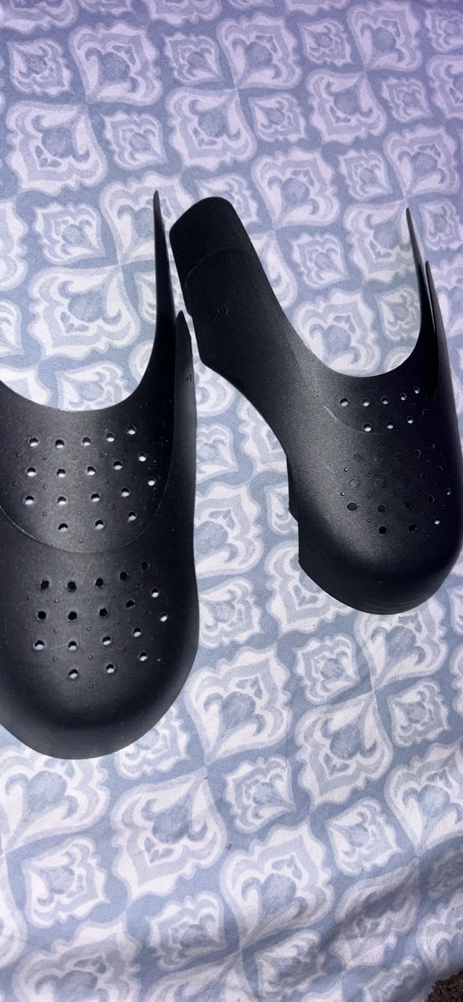 Keep your shoes looking fresh with these black shoe crease protectors! They're designed to prevent creasing and extend the life of your favourite footwear. Holes for air to come in and out. 2 for 10$. Never used. Dm for more info
